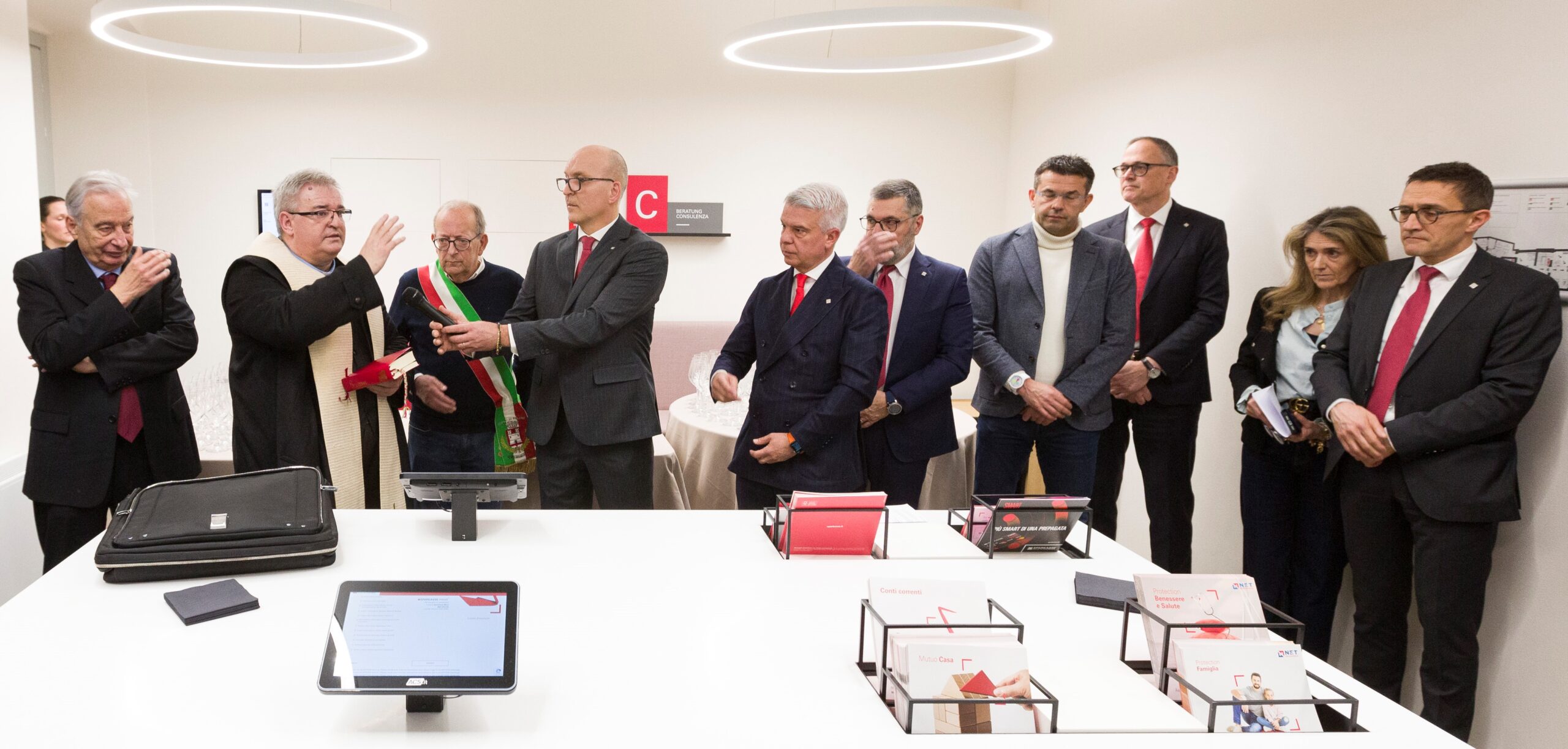 In rappresentanza del Sindaco era presente l’assessore alle Attività produttive e all'Innovazione, Alberto Curto che ha portato i saluti della città: “È importante che la banca abbia deciso di restare nel centro cittadino, in una sede prestigiosa quanto impegnativa per i lavori che sono stati necessari. Noi abbiamo fatto il nostro facilitando l’accesso in centro. Un segnale benaugurante.”