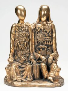 La scultura “Manichini coloniali” mostra due manichini: due figure sedute che recano vari segni simbolici sul busto e con il capo privo di tratti, che, insieme alla patina dorata, conferisce alle due figure la caratteristica aura “metafisica”.