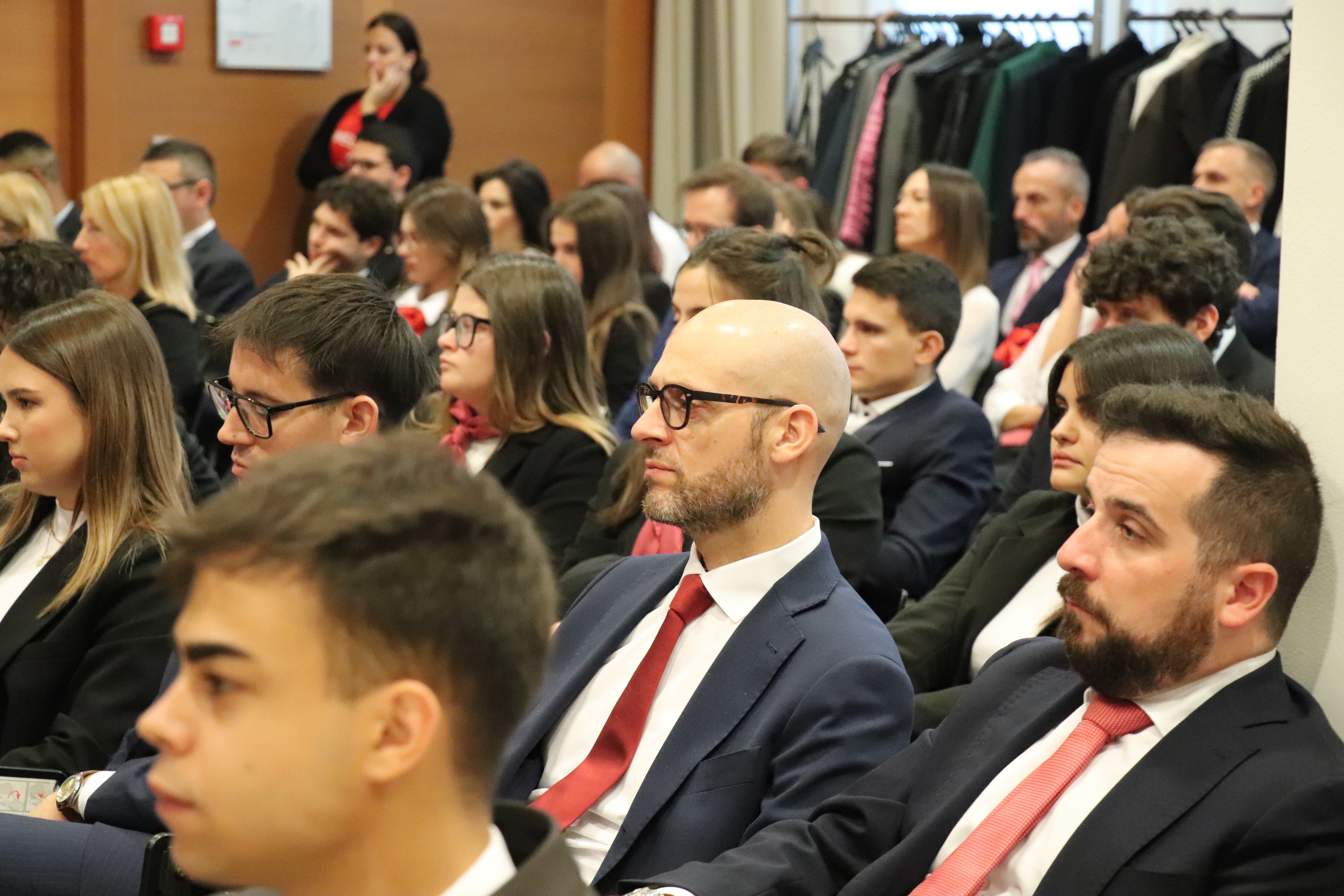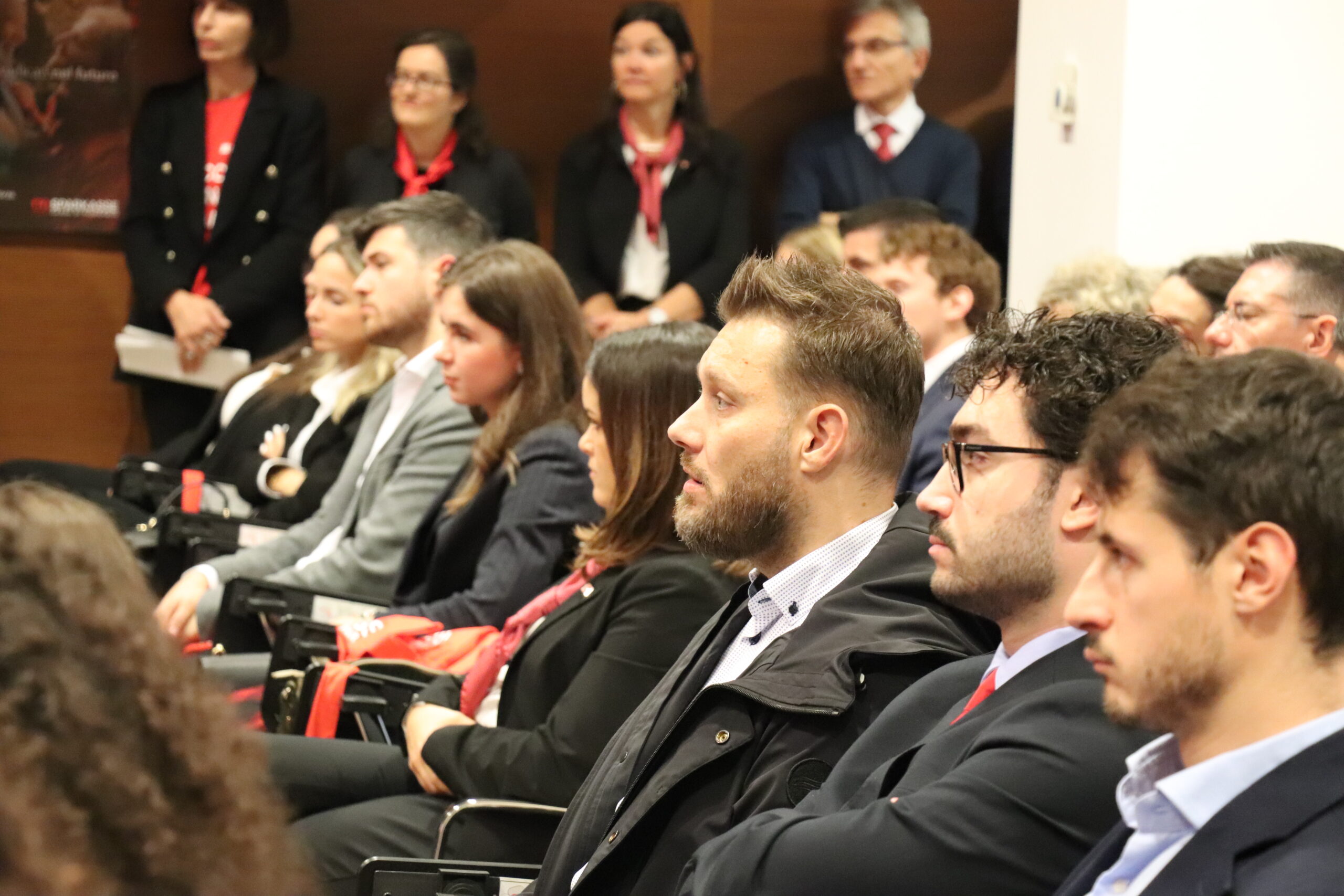 Begrüßt wurden sie von Marika Bordin, Verantwortliche der Division People Management. Eine starke Motivationsbotschaft richteten der Beauftragte Verwalter der Bankengruppe und Generaldirektor der Sparkasse, Nicola Calabrò, sowie der Generaldirektor der  CiviBank, Luca Cristoforetti.