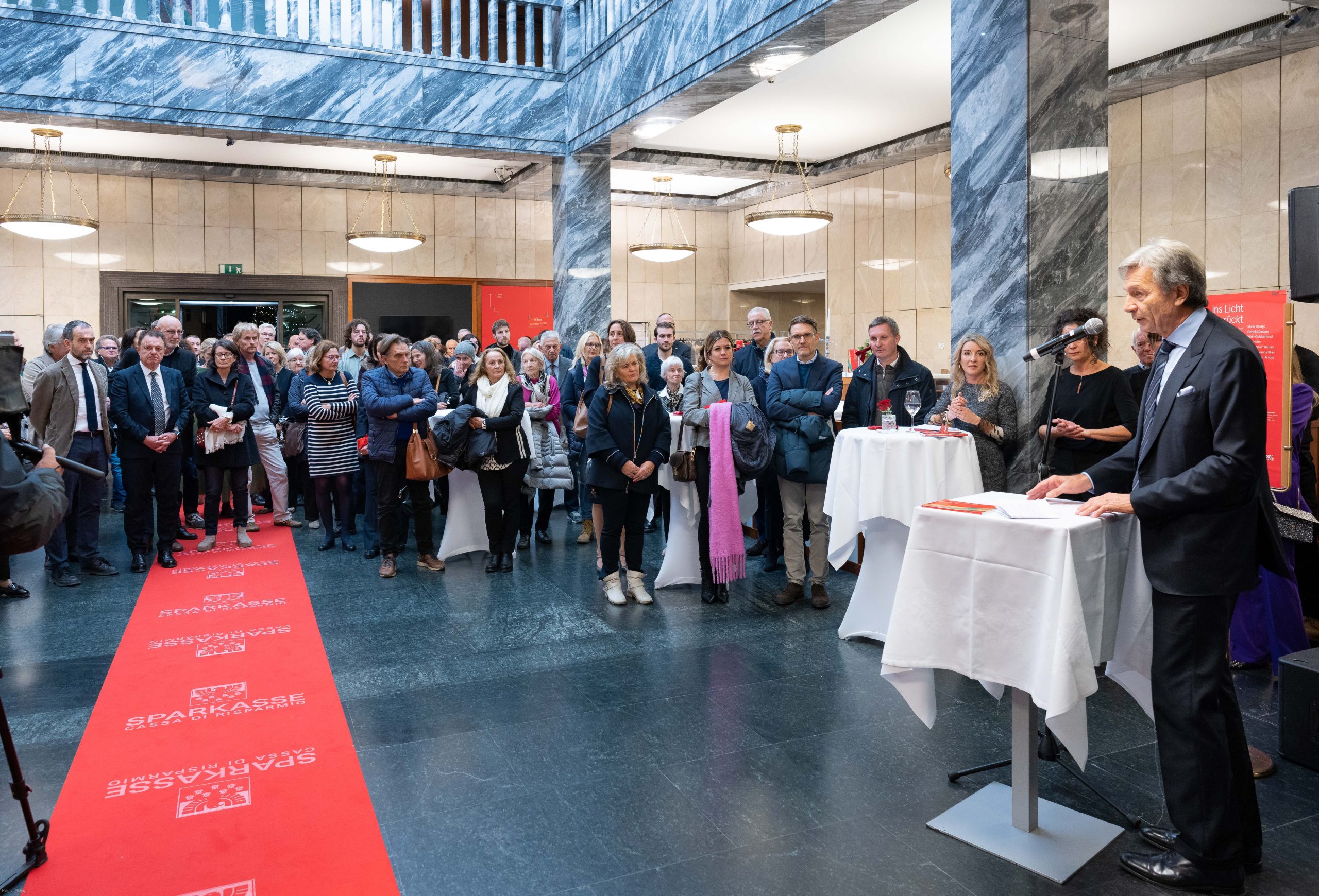 Bei der Vernissage der mittlerweile 30. Ausgabe der Ausstellung begrüßte Präsident Gerhard Brandstätter eine Reihe von Persönlichkeiten aus Politik, Wirtschaft und Kultur sowie zahlreiche Kunden und Freunde der Bank. Lobende Worte zur Initiative richtete Bozens Bürgermeister, Renzo Caramaschi. Die Kuratorinen der Ausstellung, Silvia Höller und Lisa Trockner, führten in das Thema ein und stellten das Schicksal der einzelnen Künstlerinnen vor. Die Grußworte wurden von der Direktorin der Filiale, Federica Piller Hoffer, ausgesprochen.