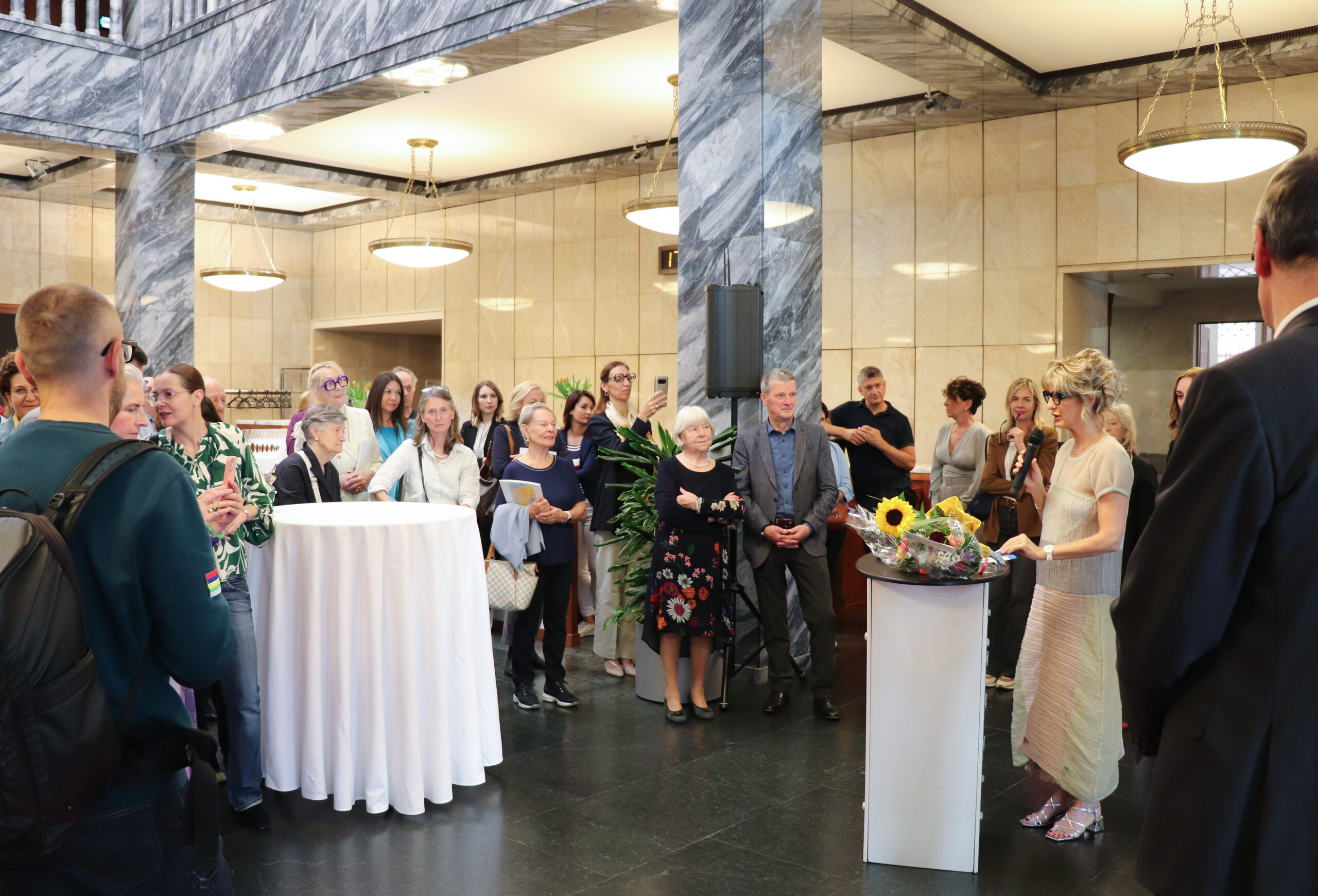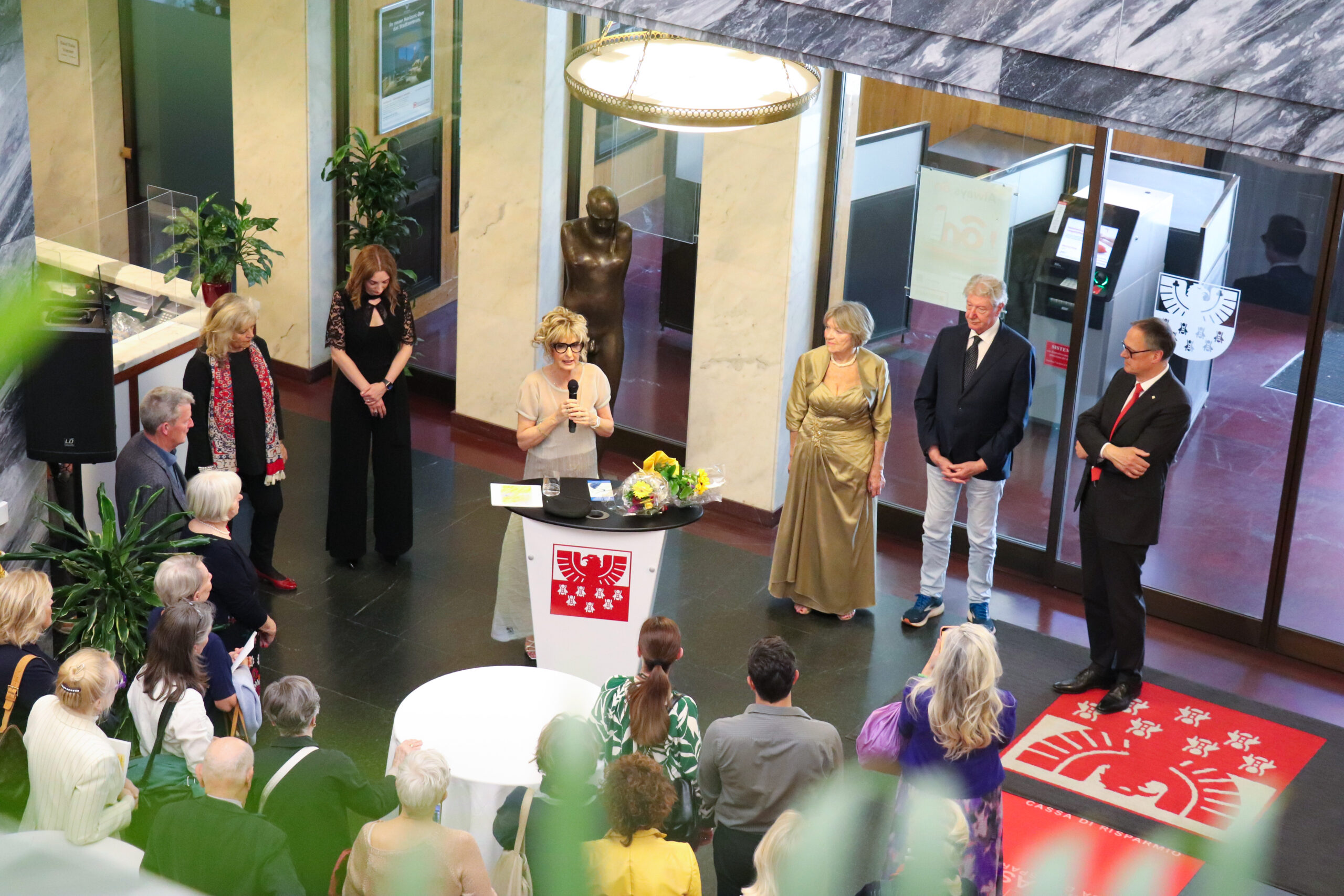 In der Sparkasse-Filiale am Waltherplatz in Bozen fand die Eröffnung der Ausstellung von Aquarellen und Skulpturen der Südtiroler Künstlerin Sieglinde Tatz Borgogno statt. Die Direktorin der Filiale Federica Piller Hoffer konnte zahlreiche Kunden und Kunstinteressierte begrüßen.