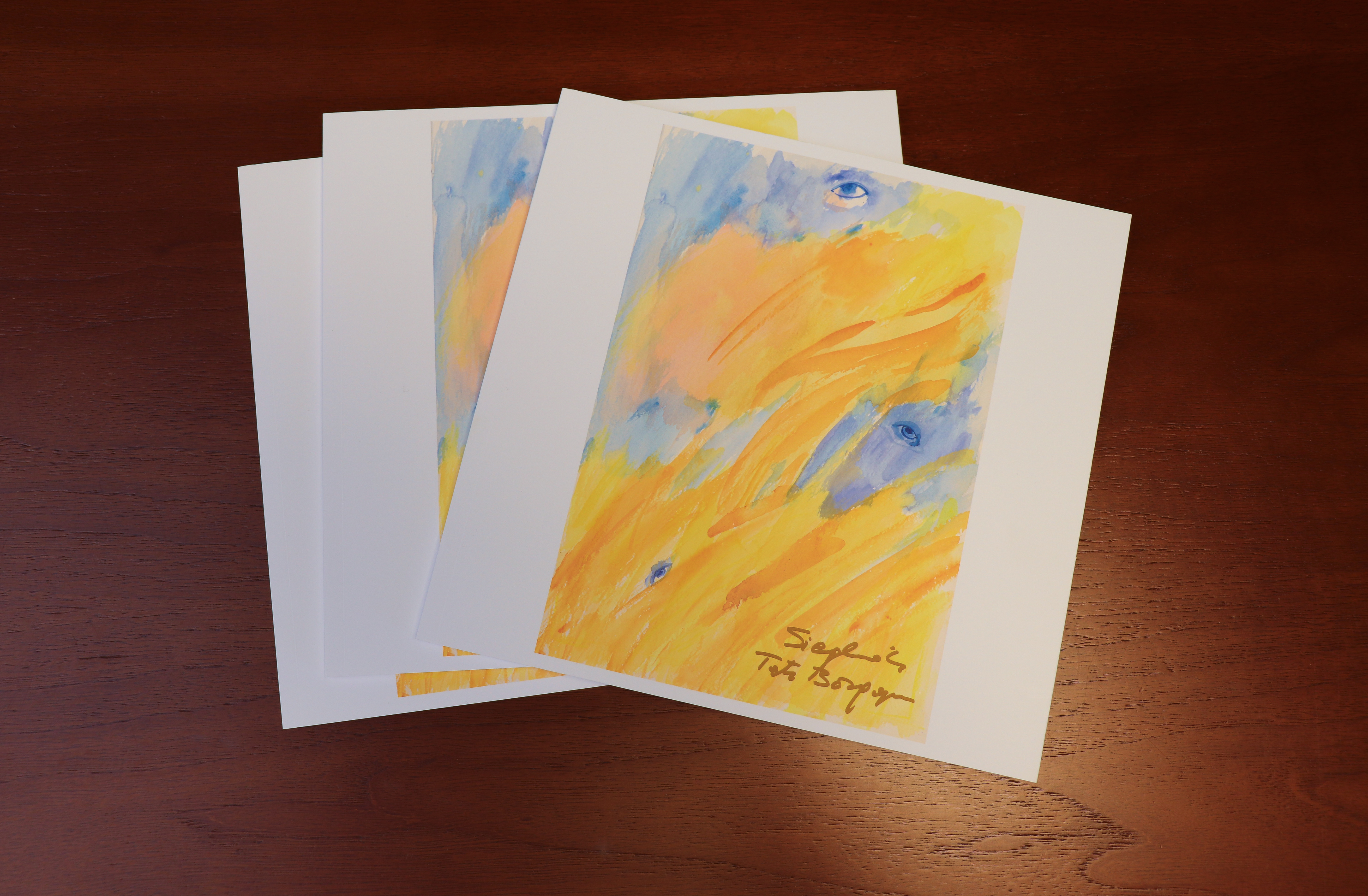 Auf nationaler und internationaler Ebene bekannt, präsentiert sie eine Sammlung von Aquarellen, die uns zwischen Wasser, Erde und Himmel reisen lassen,  in fließender Natürlichkeit, in einer vielfältigen Natur mit menschlichen und sakralen Motiven, voller Farbe und Frische, die uns nur einen kleinen Vorgeschmack auf ein immenses Schaffen geben, das in den Schränken ihres faszinierenden Ateliers verborgen ist.