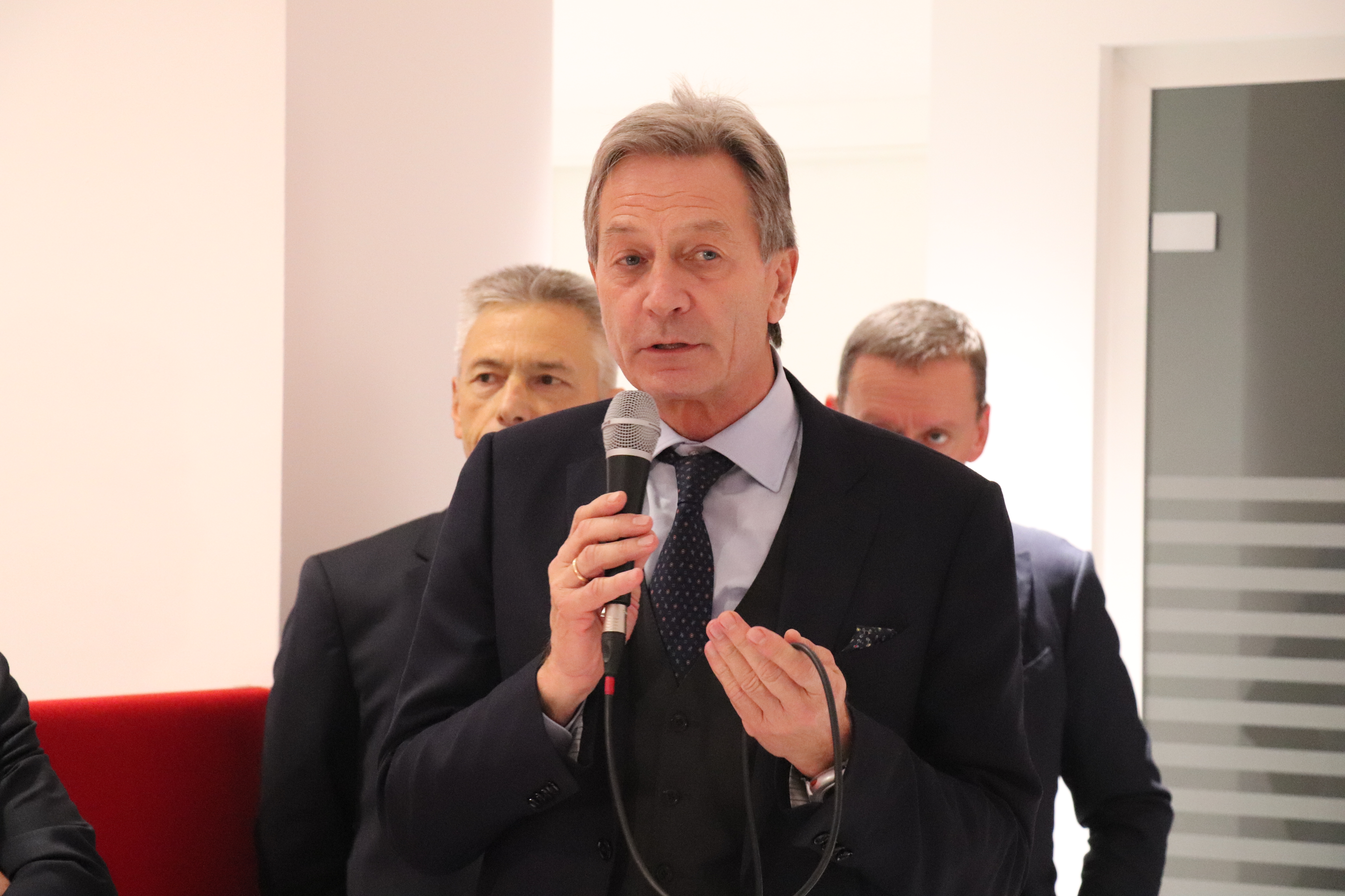 Bürgermeister Christian Bianchi begrüßte in seiner Ansprache die Eröffnung der innovativen Sparkasse-Filiale: „Es freut mich sehr und es erfüllt mich mit Stolz heute hier bei der Eröffnung anwesend sein zu dürfen. Für Leifers als aufstrebende Gemeinde, die übrigens die viertgrößte Stadt in Südtirol ist, ist es ein äußerst positives Zeichen, dass die Sparkasse hier investiert.“