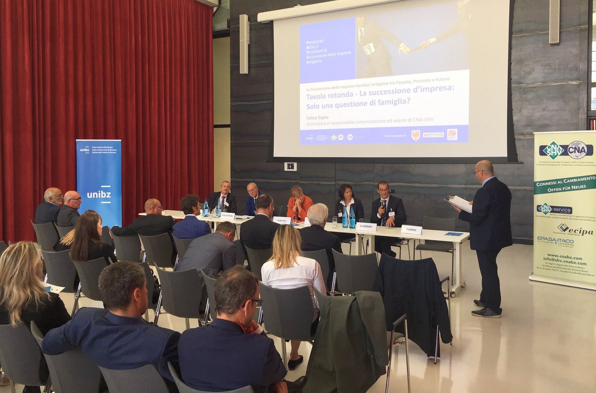 Wie können Handwerksbetriebe dabei unterstützt werden, die Herausforderung der Unternehmensnachfolge zu meistern? Die Frage stand im Mittelpunkt der Tagung, die von SHV-CNA (Südtiroler Vereinigung der Handwerker und Kleinunternehmen) und von der Unibz (Freien Universität Bozen) in Zusammenarbeit mit der Sparkasse veranstaltet worden ist.