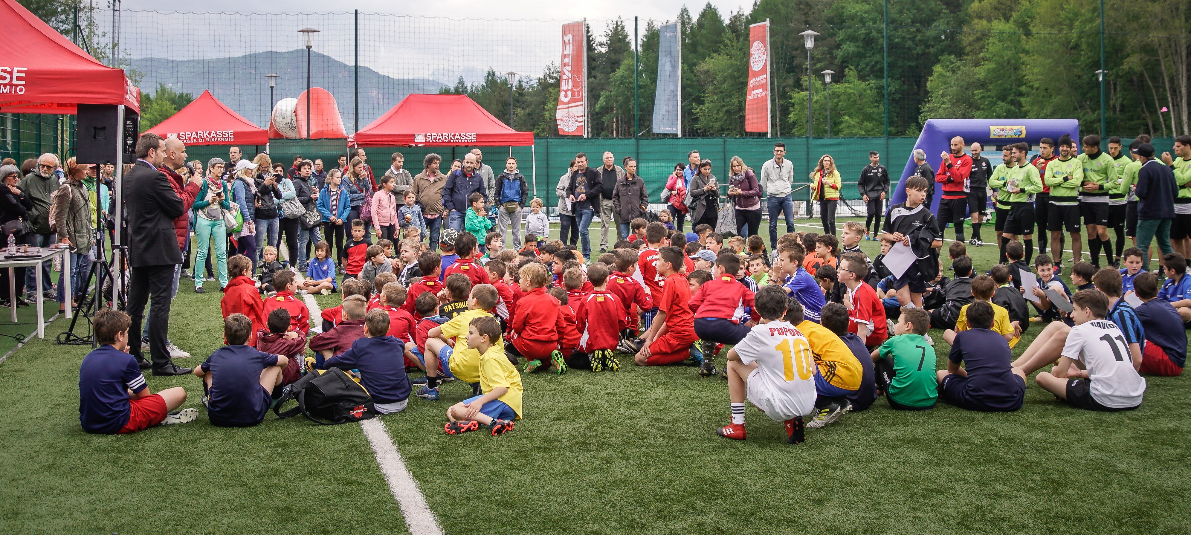 Große Beteiligung beim heurigen „Sparkassen Kids Day by Pfiff Toys“, dem Trainings- und Spielenachmittag mit dem Team der Profispieler des FC Südtirol: Knapp 200 Kinder mit deren Eltern konnten Michael Walcher von der Sparkasse sowie Geschäftsführer Dietmar Pfeifer und Jugendsektionsleiter Alex Schraffl vom FC Südtirol begrüßen. Riesen Spaß hatten aber nicht nur die Kinder. Auch die Spieler der Profimannschaft des FC Südtirol mit Trainer Paolo Zanetti und die Eltern der Kinder zeigten sich begeistert vom bunten Treiben, das sich in der FCS-Sportzone in Rungg bei Eppan abspielte. Die weißroten Jugendtrainer bauten verschiedene Technik- und Geschicklichkeitsstationen auf, die die Kinder mit dem Ball absolvieren mussten und für die sie Punkte zugesprochen bekamen. Anschließend fanden Mini-Turniere statt. Am Ende bekamen alle Kinder eine Urkunde mit der erreichten Punktezahl und ein tolles Geschenk überreicht. Hier ein Video des Events.