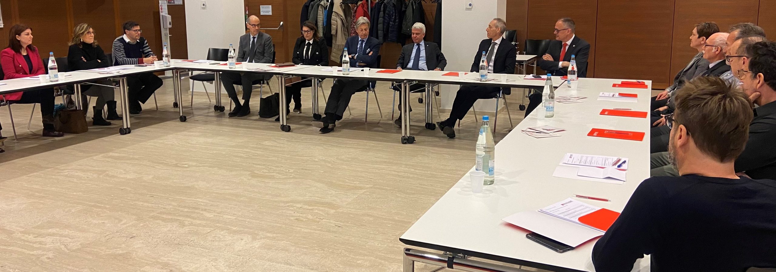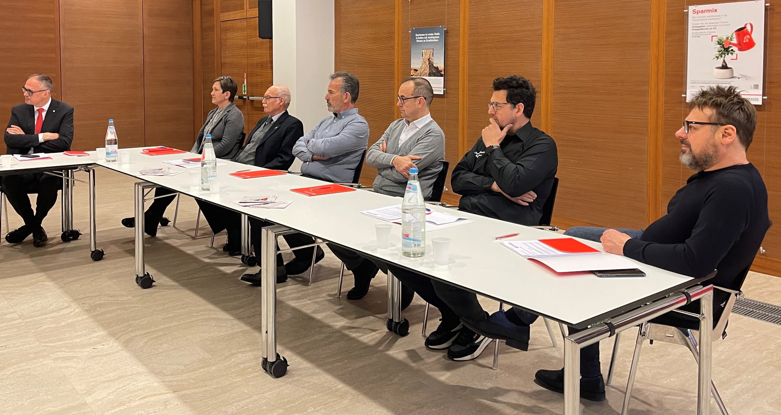 Führungsspitzen von Sparkasse und Confesercenti Alto Adige Südtirol vertiefen Zusammenarbeit