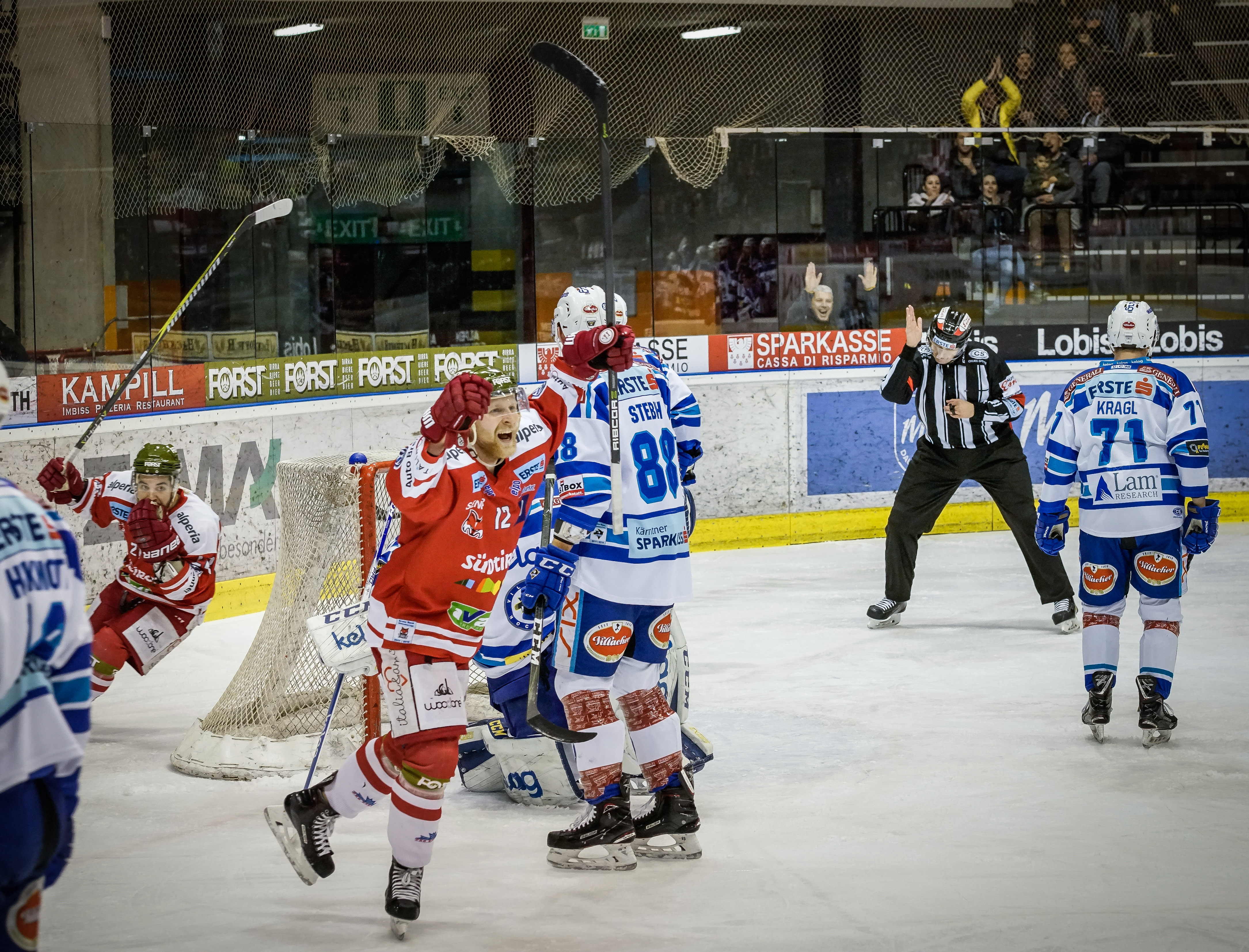 Großer Erfolg für den Hockey-Sparkasse-Day: Tolle Stimmung herrschte am Freitagabend in der Eiswelle in Bozen beim Spiel des Hockey-Club Bozen/Südtirol gegen den EC VSV Villach. Insgesamt über 5.000 Zuschauer waren anwesend, davon 1.000 Sparkasse-Kunden. Dass so viele Kunden ein derartiges Interesse an der Aktion der Sparkasse gezeigt haben, spricht für den Erfolg der Initiative, die durchgeführt wurde, um die Kundenbeziehung zu stärken. Es war ein in spannendes Spiel bis zum Schluss, das mit einem 5:2-Sieg der „Weiß-Roten“ gegen Villach endete. Die „Foxes“ des HCB-Südtirol, deren Sponsor bekanntlich die Sparkasse ist, starteten wie aus einem Guss und ließen den Gästen keinen Spielraum. In den Pausen konnten sich die mit Würstel und Getränk bewirteten Kunden gesellschaftlich unterhalten und über den Spielverlauf fachsimpeln. Das Feedback der begeisterten Kunden war überaus positiv. Ein einzigartiges Erlebnis, so die Rückmeldungen. „Für uns als territoriale Regionalbank ist es ein Muss, in die Jugend und somit in Sport, neben Kultur und Sozialen, zu investieren, wie die vielen begeisterten hier anwesenden Jugendlichen beweisen“, erklärt Präsident Gerhard Brandstätter, der selbst dem Spiel beiwohnte. Unter den Zuschauern gesellten sich unter anderem auch Verwaltungsrat Marco Carlini und Landeshauptmann Arno Kompatscher. Am Ende wurde der beste Spieler des HCB Südtirol gekürt, der aus den Händen von Präsident Brandstätter eine kleine Auszeichnung erhielt.
