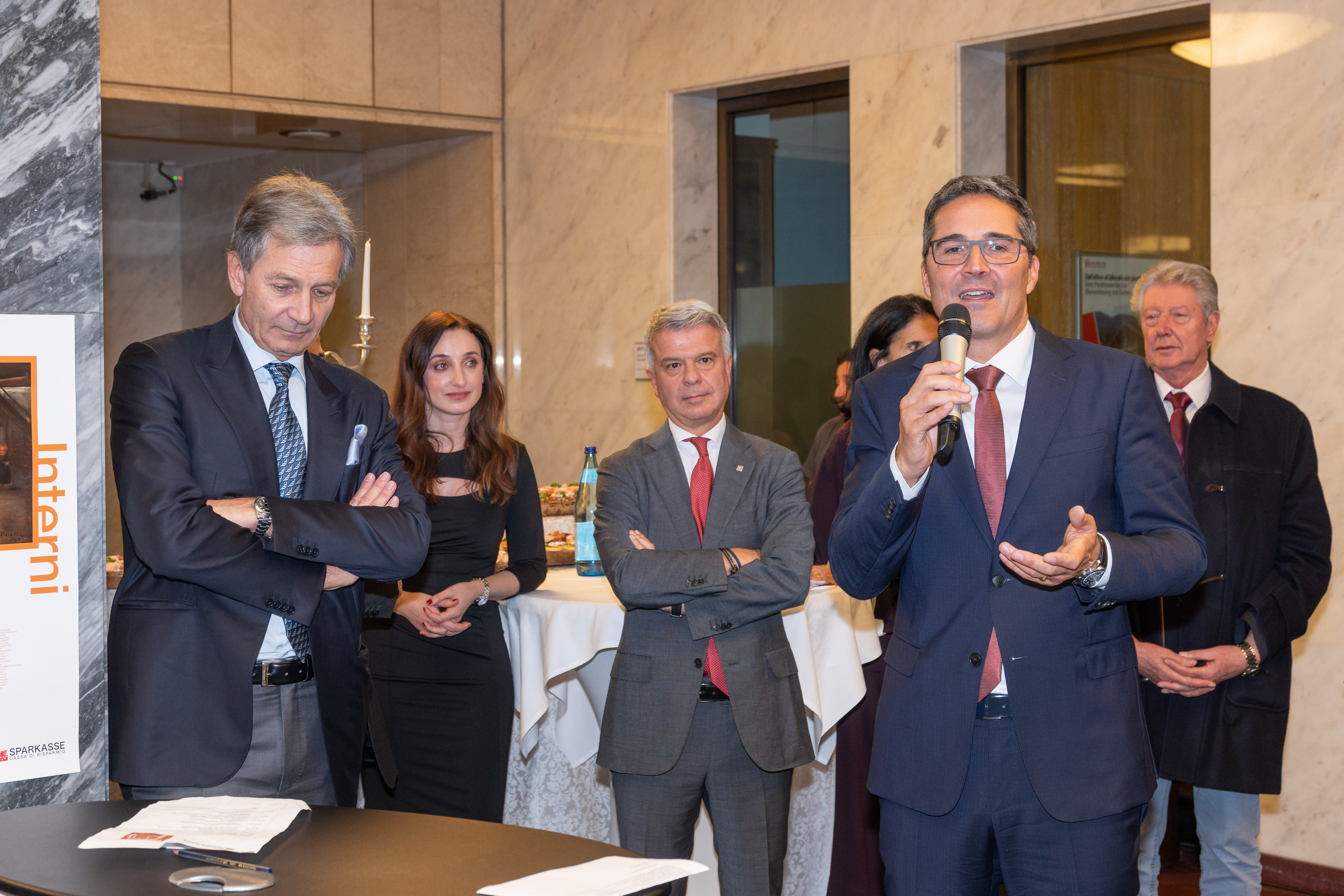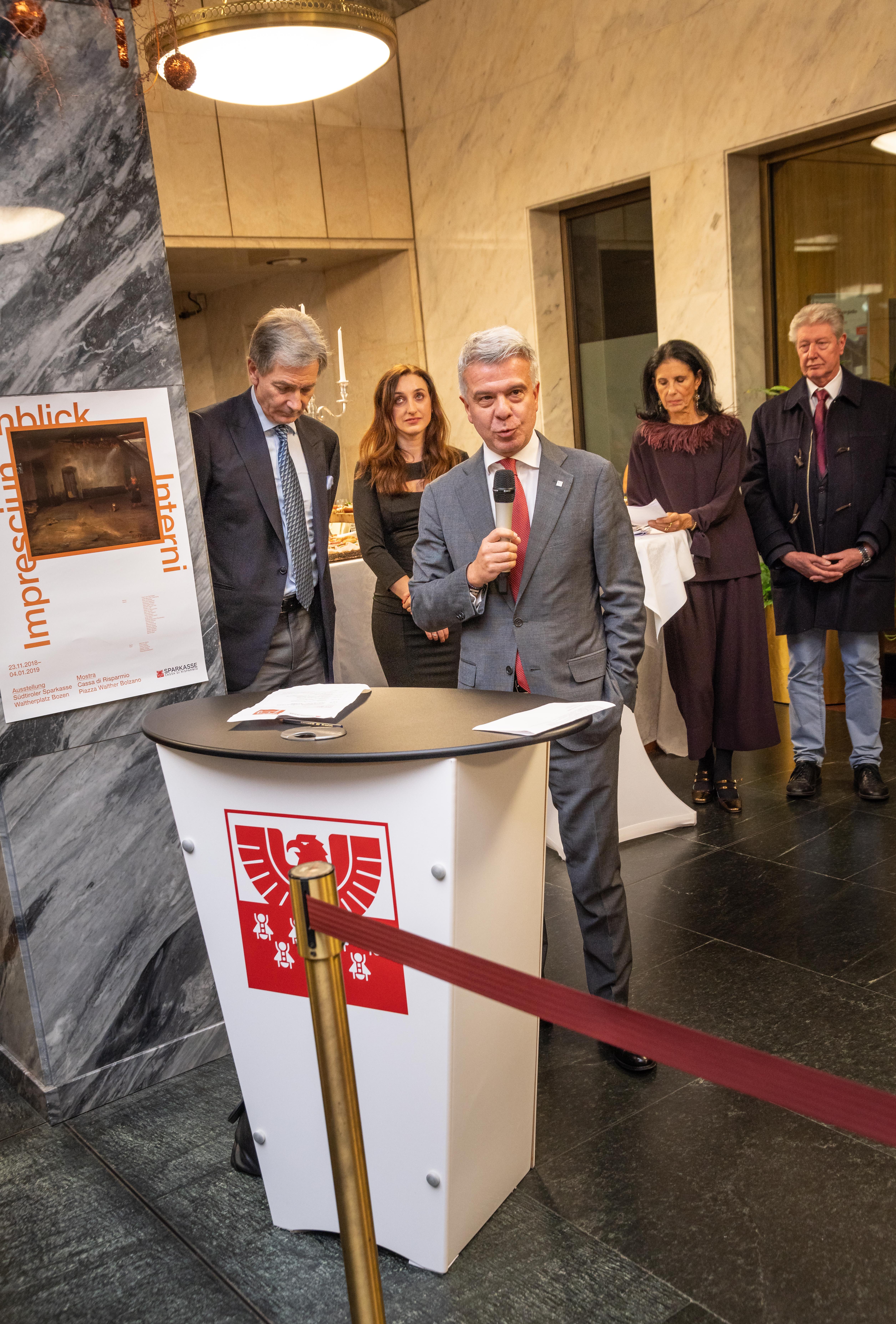 „Kunstinteresse und Kunstverständnis bildeten immer schon einen festen Bestandteil des gesellschaftlichen Engagements der Sparkassenwelt Bank und Stiftung. Sparkasse und Kunst - das bedeutet Raum für die kulturelle Identität unseres Territoriums. Das Thema Innenwelten steht im Übrigen auch in Verbindung mit unserem neuen Filialkonzept, das sich durch eine offene und freundliche Gestaltung der Räume auszeichnet“, erklärte Präsident Brandstätter, der auf Gemeinsamkeiten zwischen Ausstellung und Bank hinwies: „Einen besonderen Dank möchte ich auch dem Mart, einem der bedeutsamsten Museen Europas für moderne Kunst aussprechen, von dem einige bedeutende Werke in der Ausstellung bewundert werden können.“