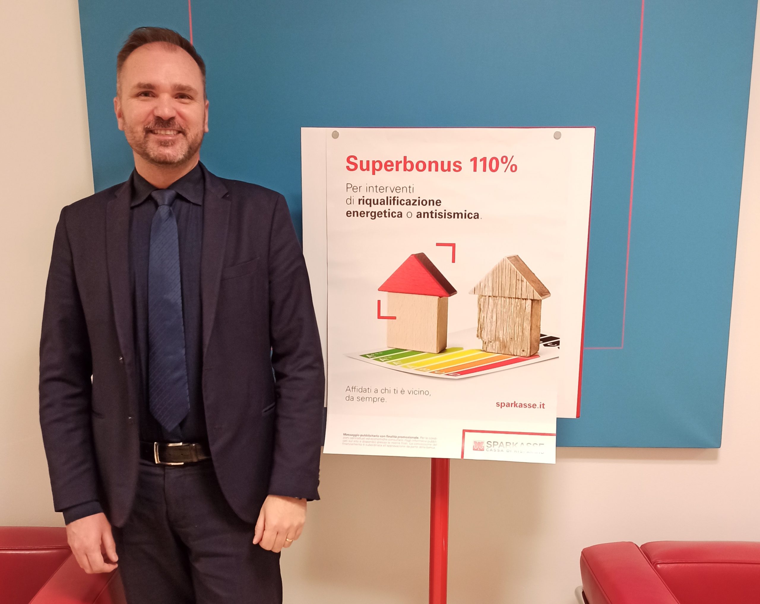 Michele Casotti heißt der erste Sparkasse-Kunde, der unser Rundum-Paket Superbonus 110% in Anspruch genommen hat. Stammkunde unserer Filiale in Lavis, gemeinsam mit seiner Gattin Cristina Serafin, erklärt er sich sehr zufrieden mit dem Dienst der Sparkasse:
