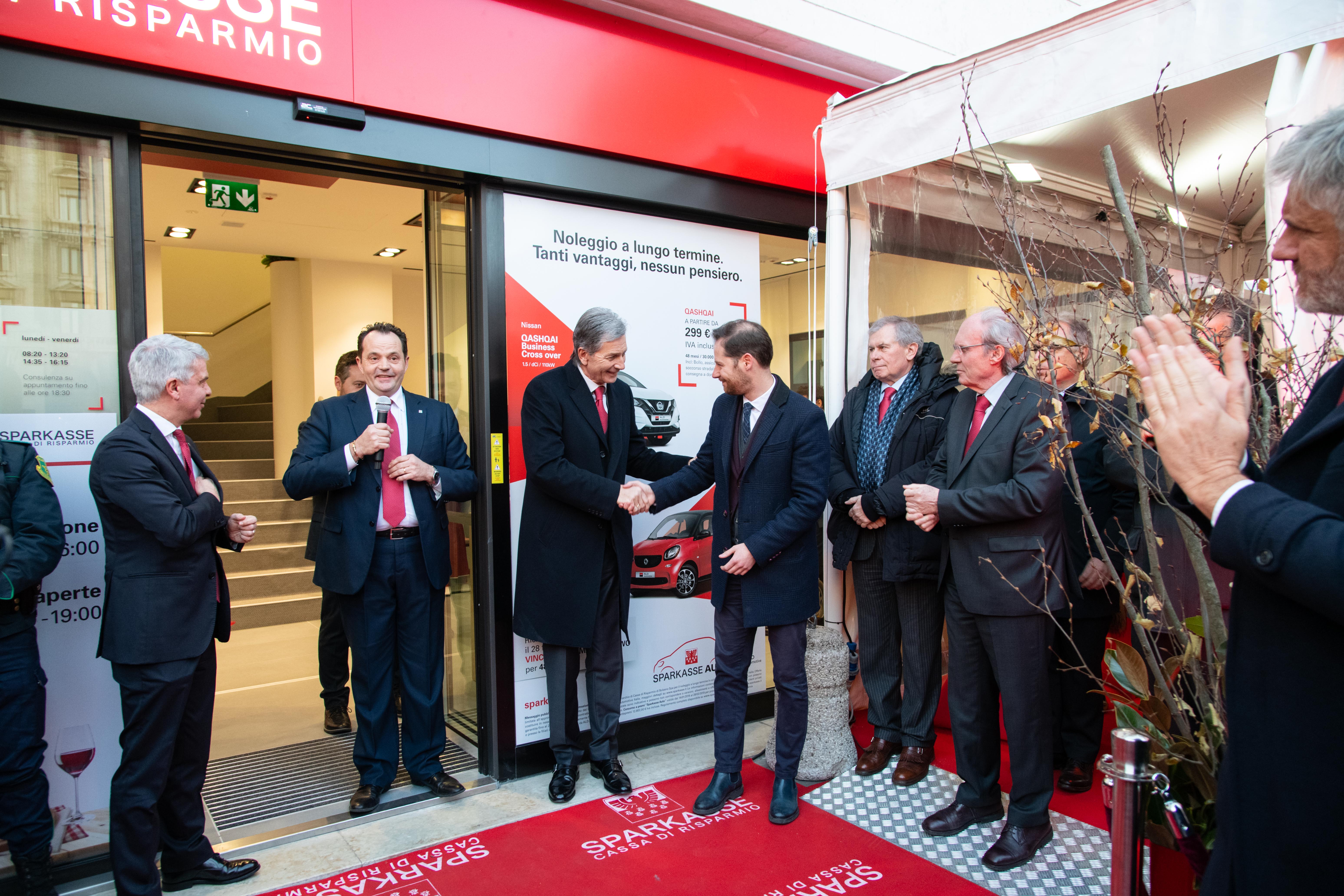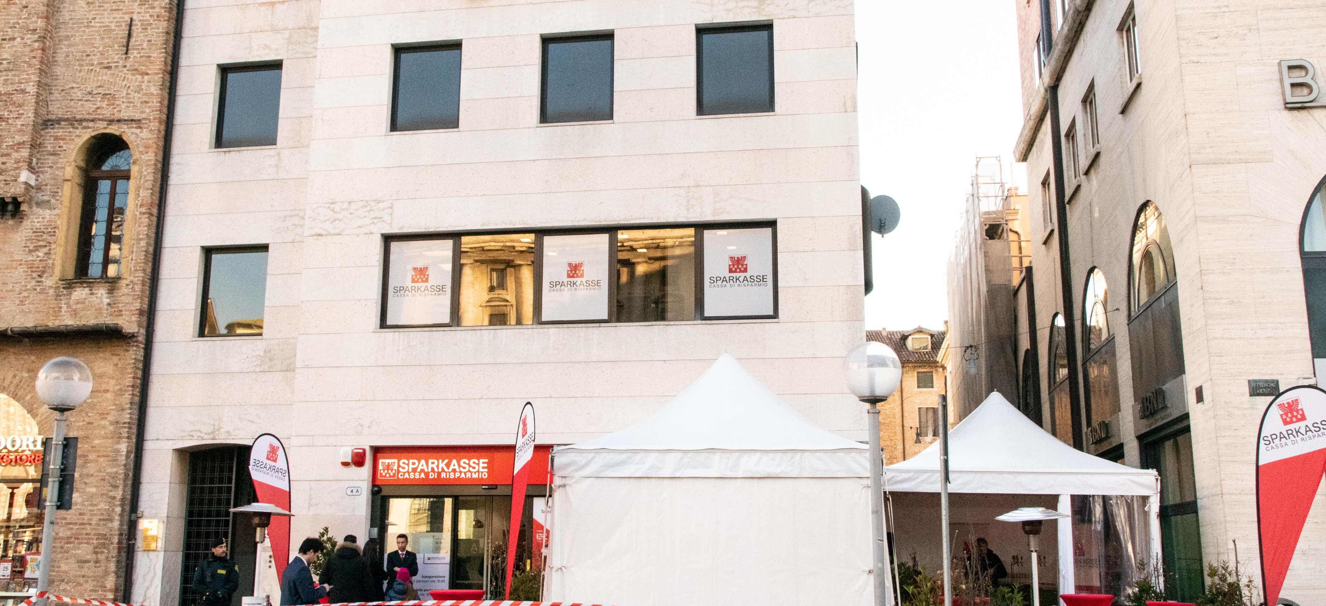Die neue Sparkasse-Filiale in Padua auf der zentralen Piazza Insurrezione im Herzen der Stadt, ist feierlich eröffnet worden. „Wir sind eine territoriale, solide und effiziente Bank, die den Kunden schnelle Antworten auf seine Anforderungen liefern kann. Unsere Präsenz in Padua ist wesentlich gestärkt worden und stellt eine strategische Entscheidung dar“, erklärten der Präsident Gerhard Brandstätter sowie der Beauftragte Verwalter und Generaldirektor Nicola Calabrò. Worte der Anerkennung sowie Glückwünsche sprach der Stadtrat für Handel und Gewerbe der Gemeinde Padua, Antonio Bressa. Der Direktor der Filiale, Nicola Zampieri, begrüßte gemeinsam mit seinem Team die Kunden und Gäste und stellte die neue Filiale vor, die nach dem neuen Konzept der Bank gestaltet wurde, um Innovation (neue Technologien) mit Tradition (qualitativ hochstehende Beratung in einem für den Kunden bestmöglich ansprechendem Ambiente) zu vereinen.