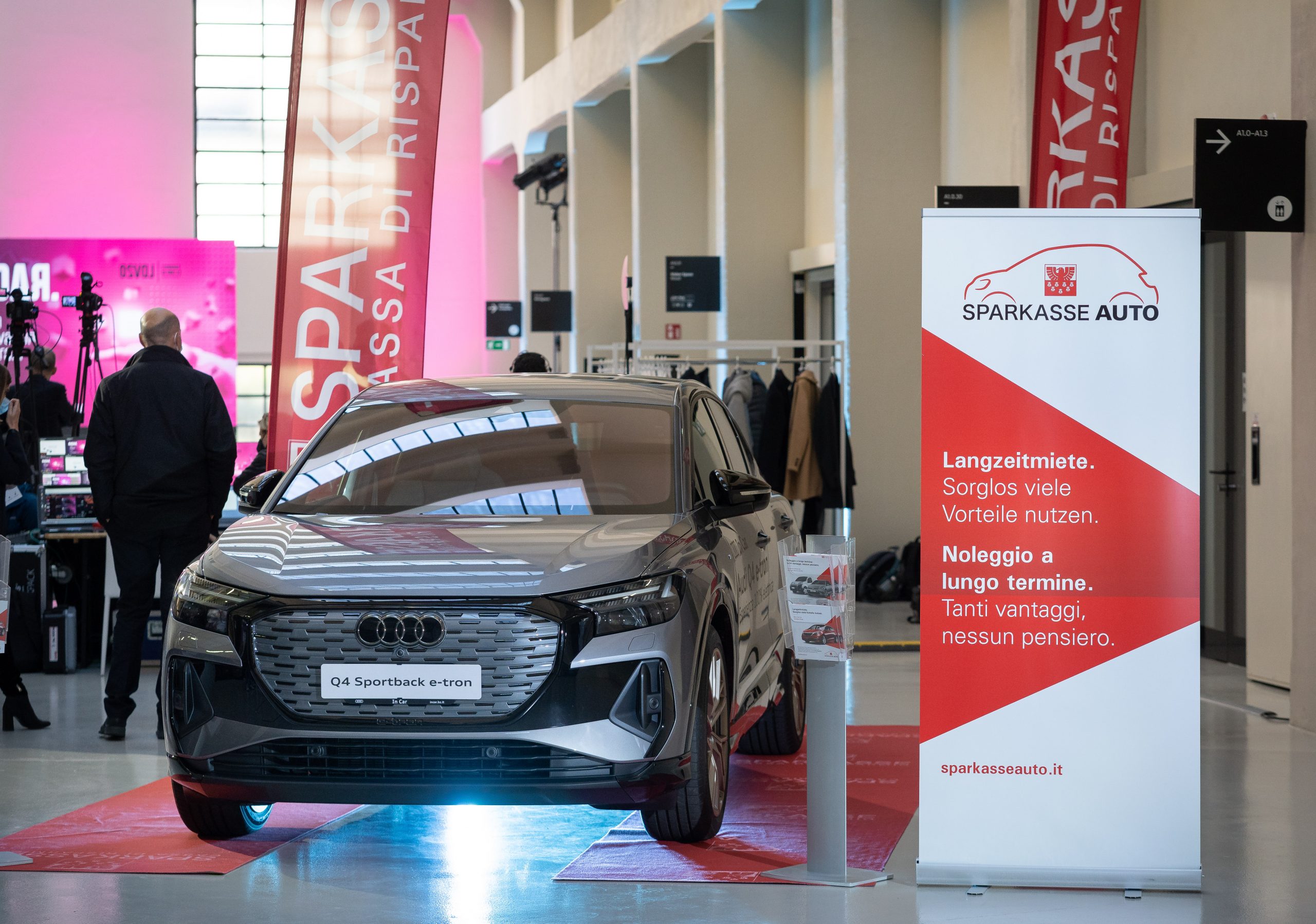 Im Bild v.l.n.r. Sofia Khadiri und Pietro Trentini, Project Manager von LDV20, sowie Nicola Calabrò, Beauftragter Verwalter und Generaldirektor der Sparkasse.