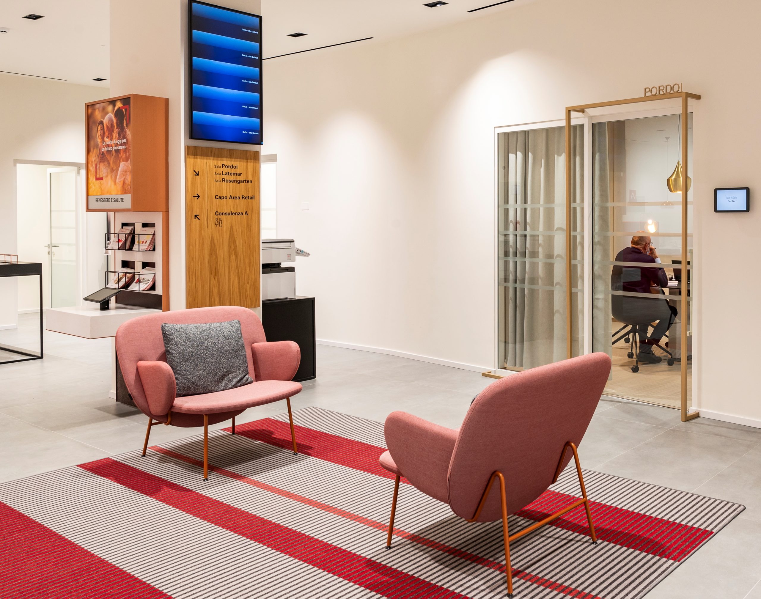 „Die Filiale zeichnet sich durch ein neues Raumverständnis aus, das eine umfassende und persönliche Beratung gewährleistet. Gleichzeitig können Servicedienste zunehmend selbstständig in Anspruch genommen werden. Großer Wert wird auch auf eine effiziente Produktkommunikation gelegt,“ erklärt der zuständige Bezirksleiter Gianmarco Lincetti.