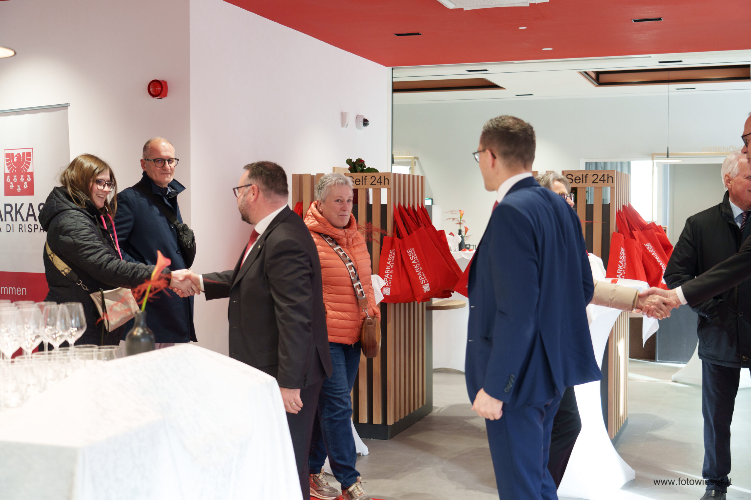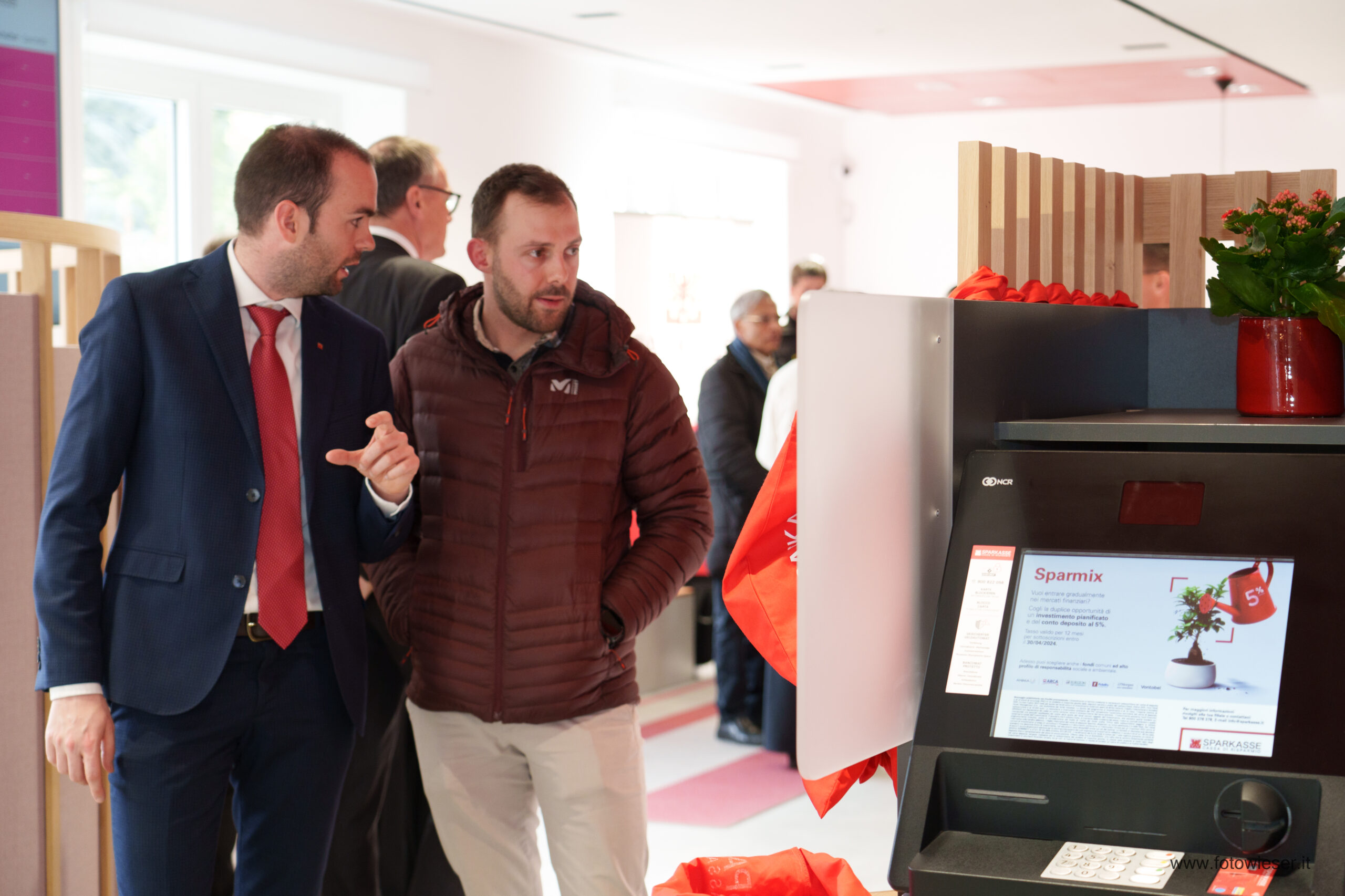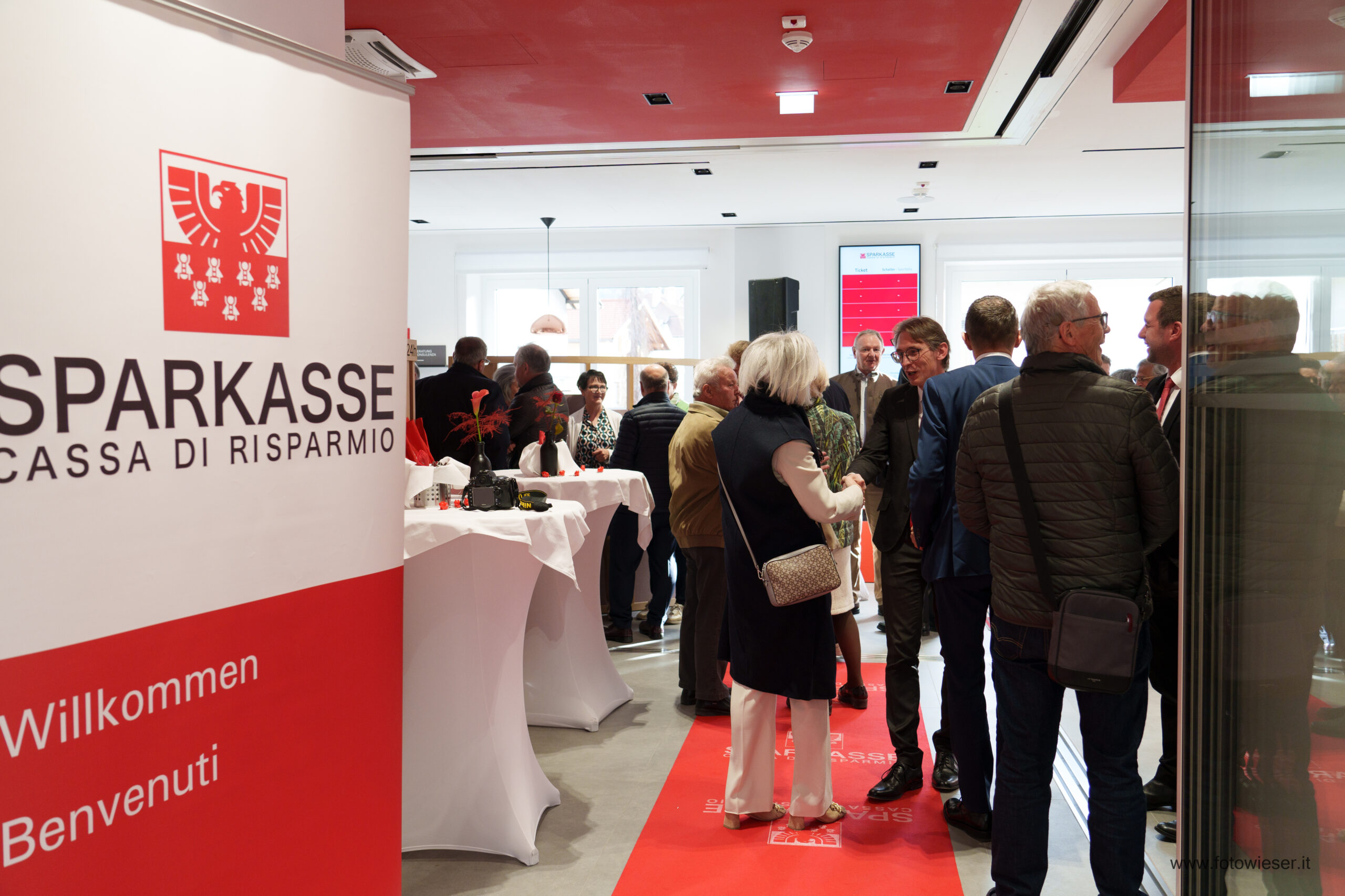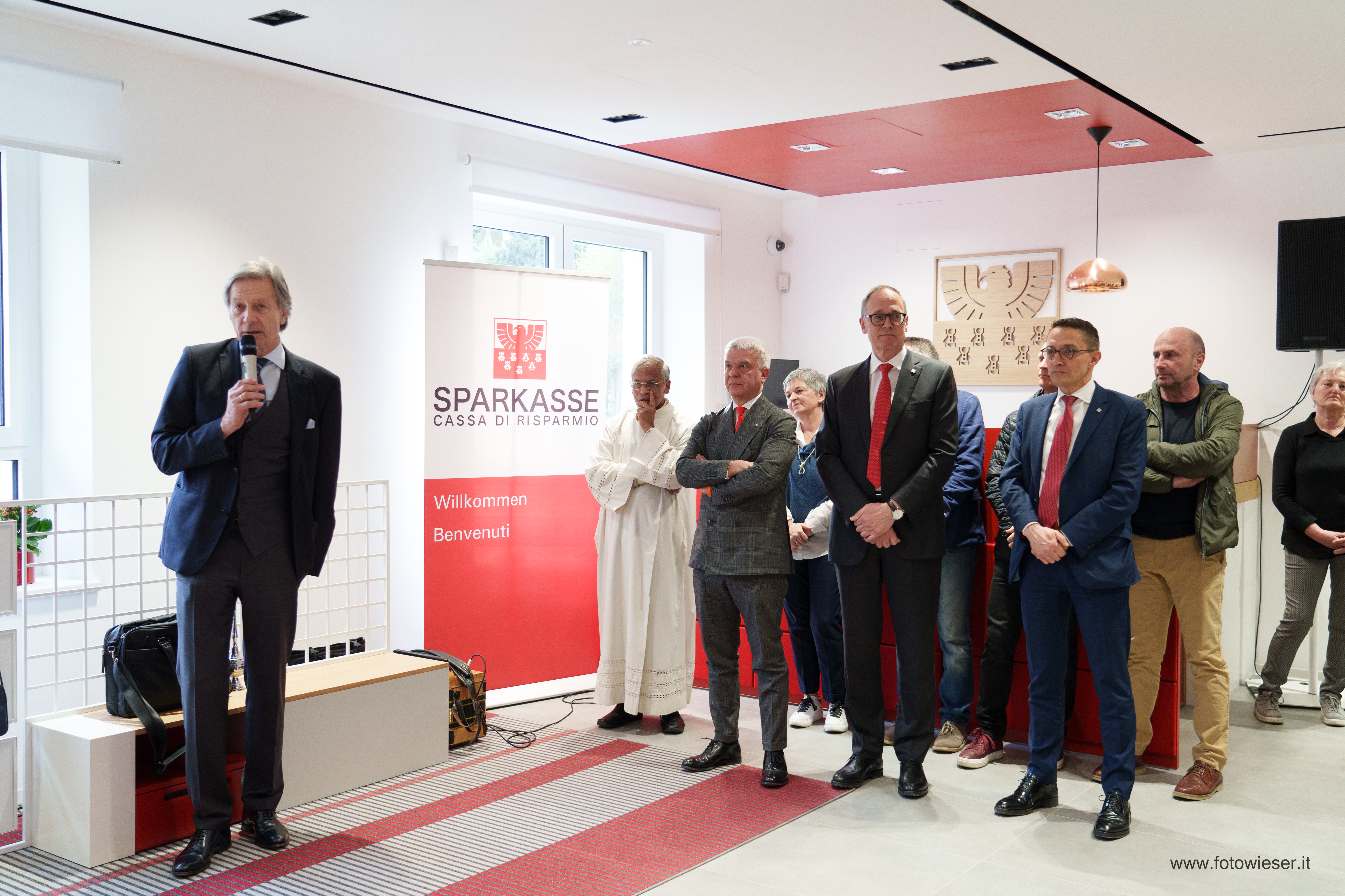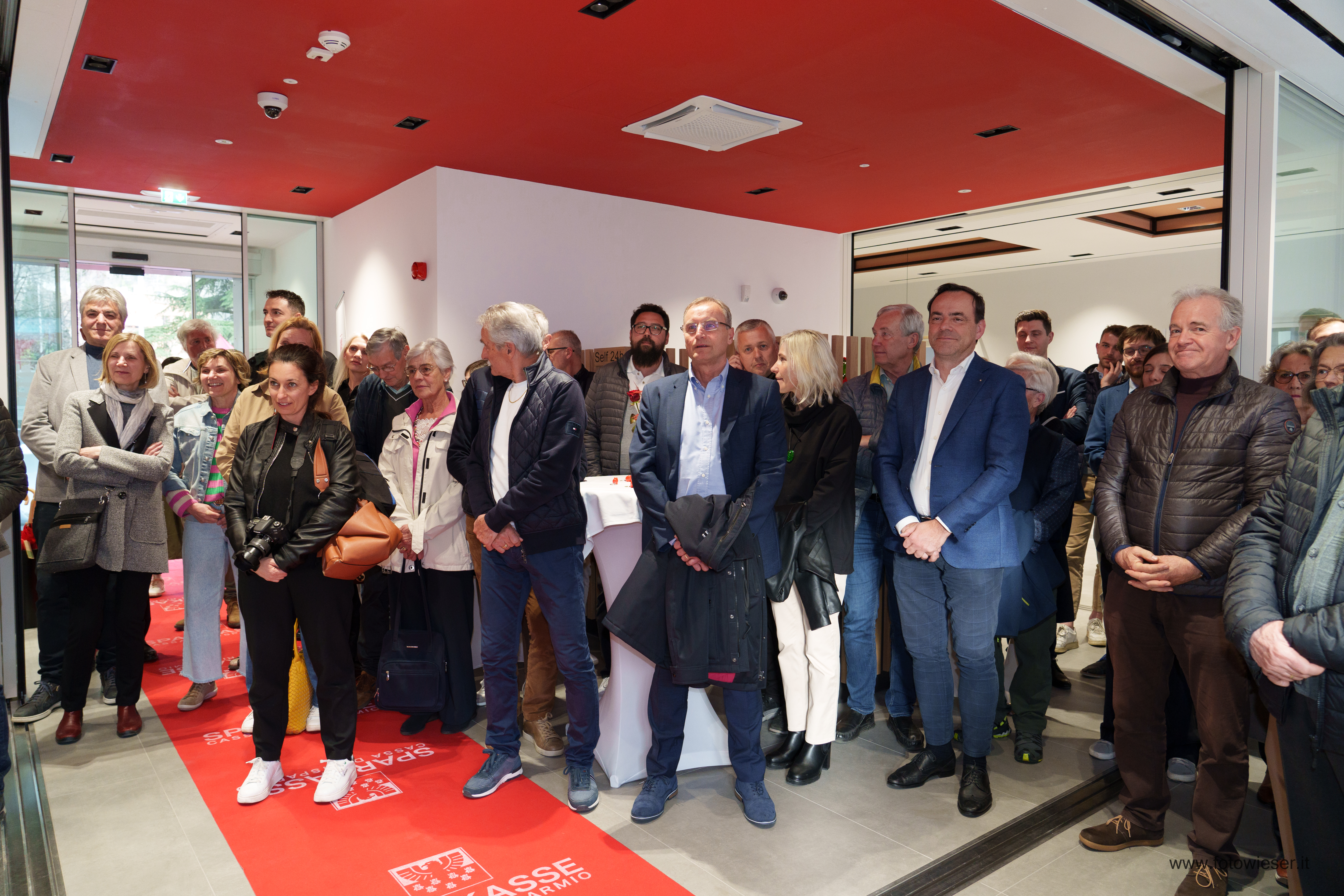 Der Direktor der Filiale, Andreas Zischg, hieß die zahlreich erschienenen Kundinnen und Kunden herzlich willkommen. Die Führungsspitze der Bank war mit dem Präsidenten Gerhard Brandstätter gemeinsam mit dem Beauftragten Verwalter und Generaldirektor Nicola Calabrò vertreten. Gemeindereferentin Monika Wielander, die in Vertretung des Bürgermeisters anwesend war, begrüßte in ihrer Ansprache die Eröffnung der innovativen Sparkasse-Filiale. Dem schloss sich auch Manfred Pinzger, seines Zeichens Präsident des Hotelier- und Gastwirteverbandes, an.