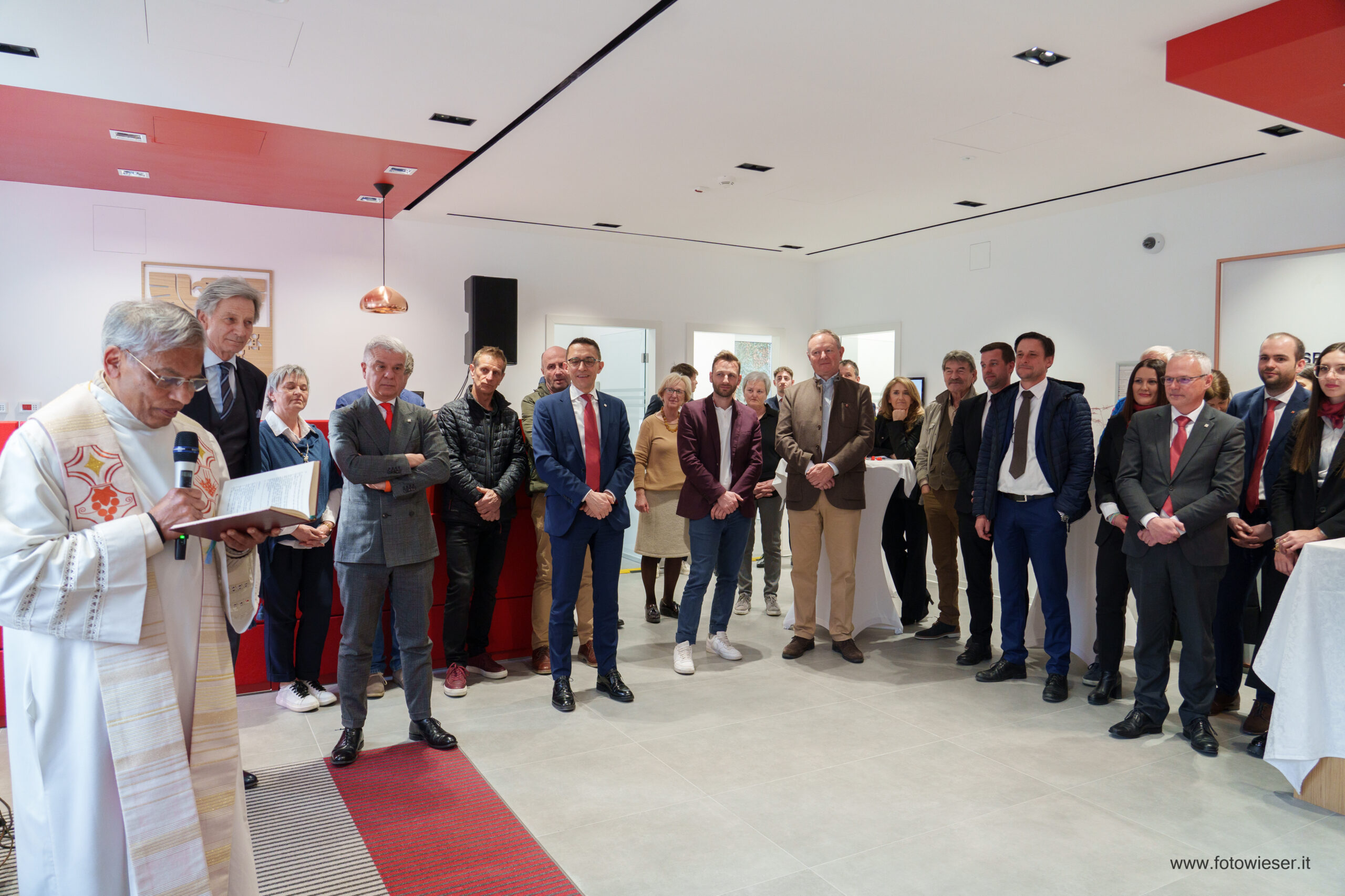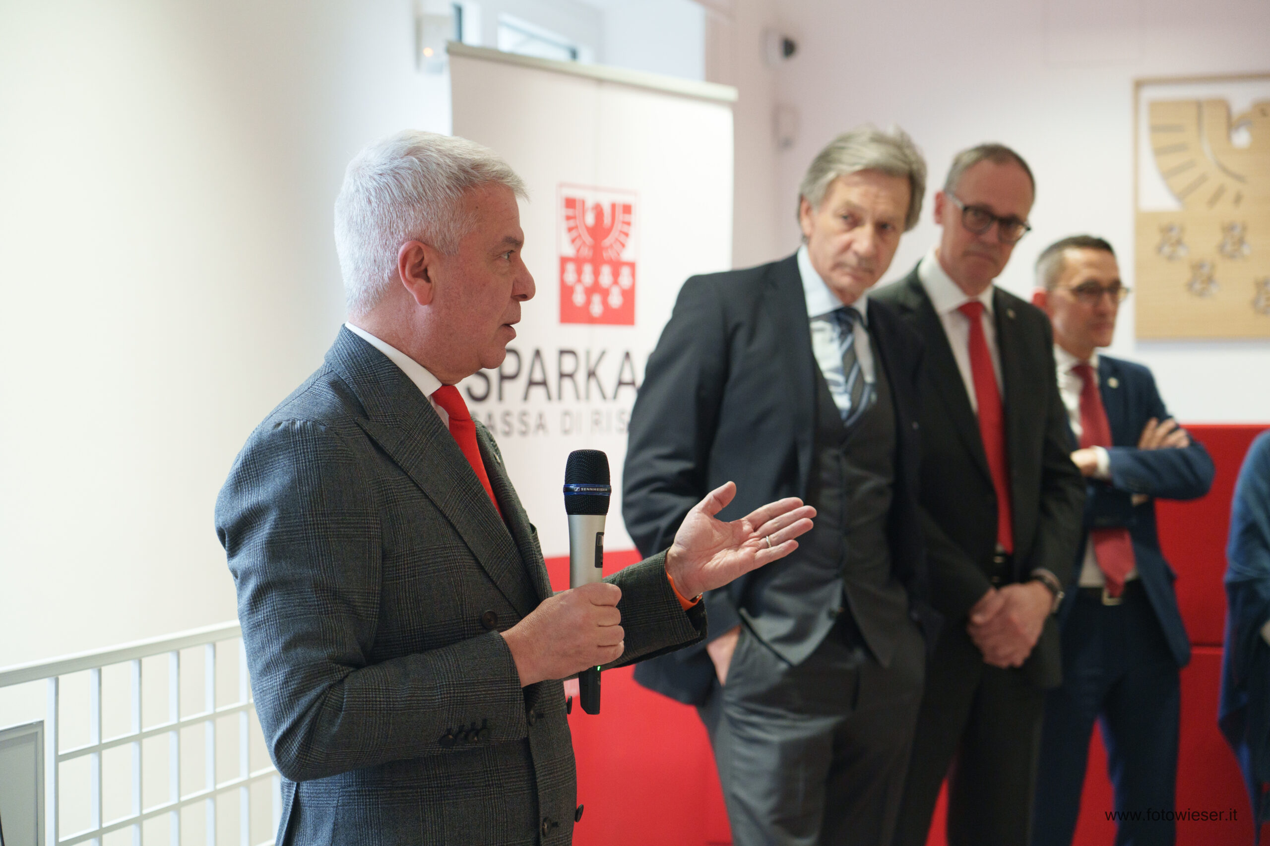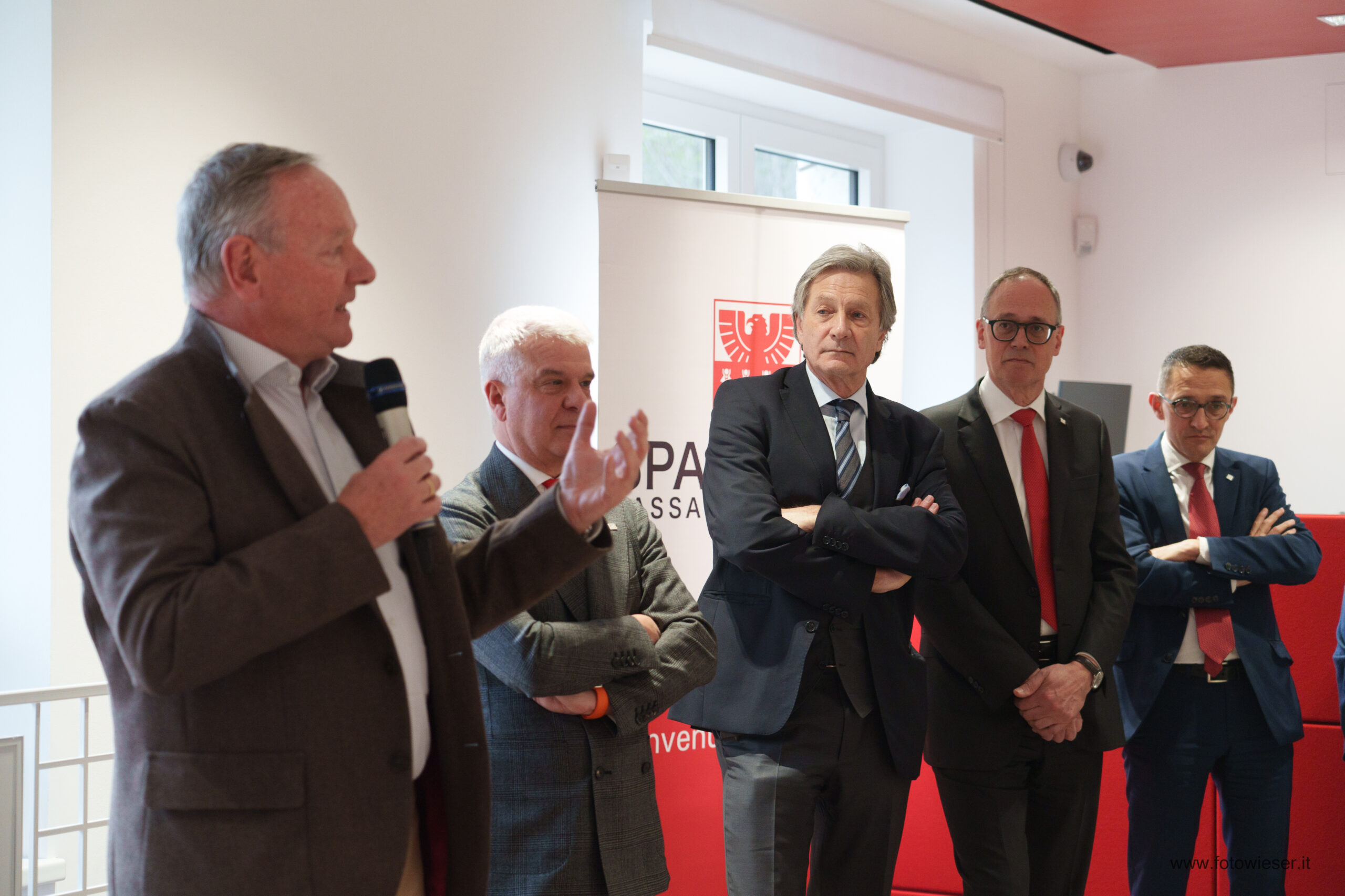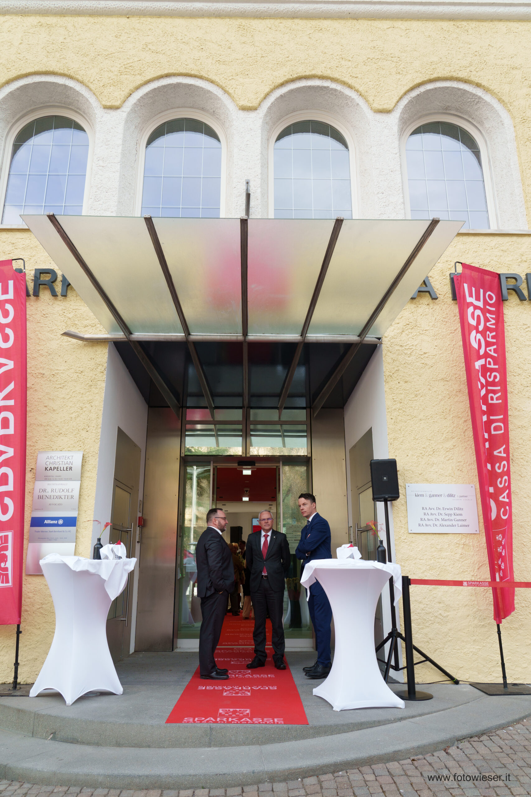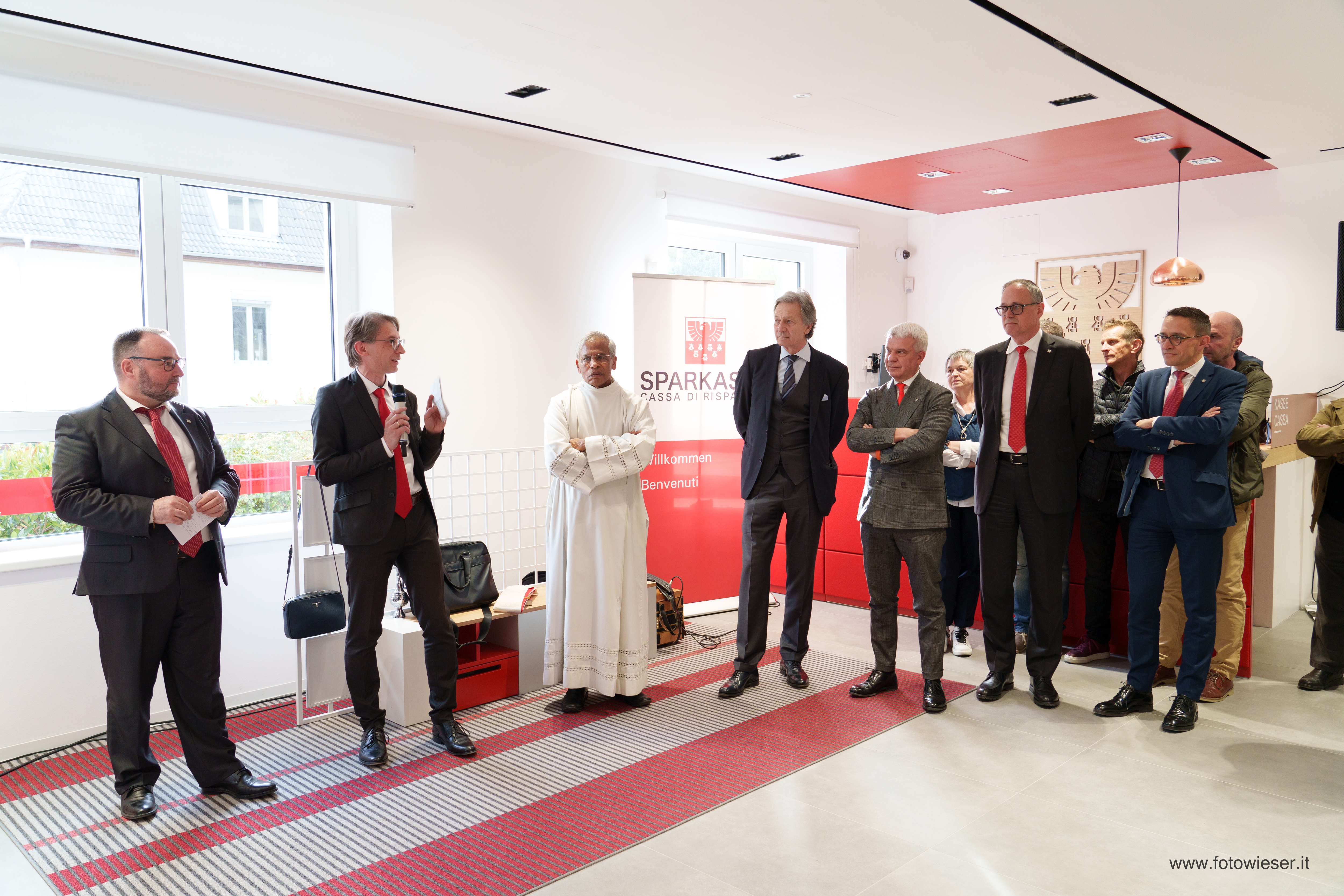 Der Direktor der Filiale, Andreas Zischg, hieß die zahlreich erschienenen Kundinnen und Kunden herzlich willkommen. Die Führungsspitze der Bank war mit dem Präsidenten Gerhard Brandstätter gemeinsam mit dem Beauftragten Verwalter und Generaldirektor Nicola Calabrò vertreten. Gemeindereferentin Monika Wielander, die in Vertretung des Bürgermeisters anwesend war, begrüßte in ihrer Ansprache die Eröffnung der innovativen Sparkasse-Filiale. Dem schloss sich auch Manfred Pinzger, seines Zeichens Präsident des Hotelier- und Gastwirteverbandes, an.