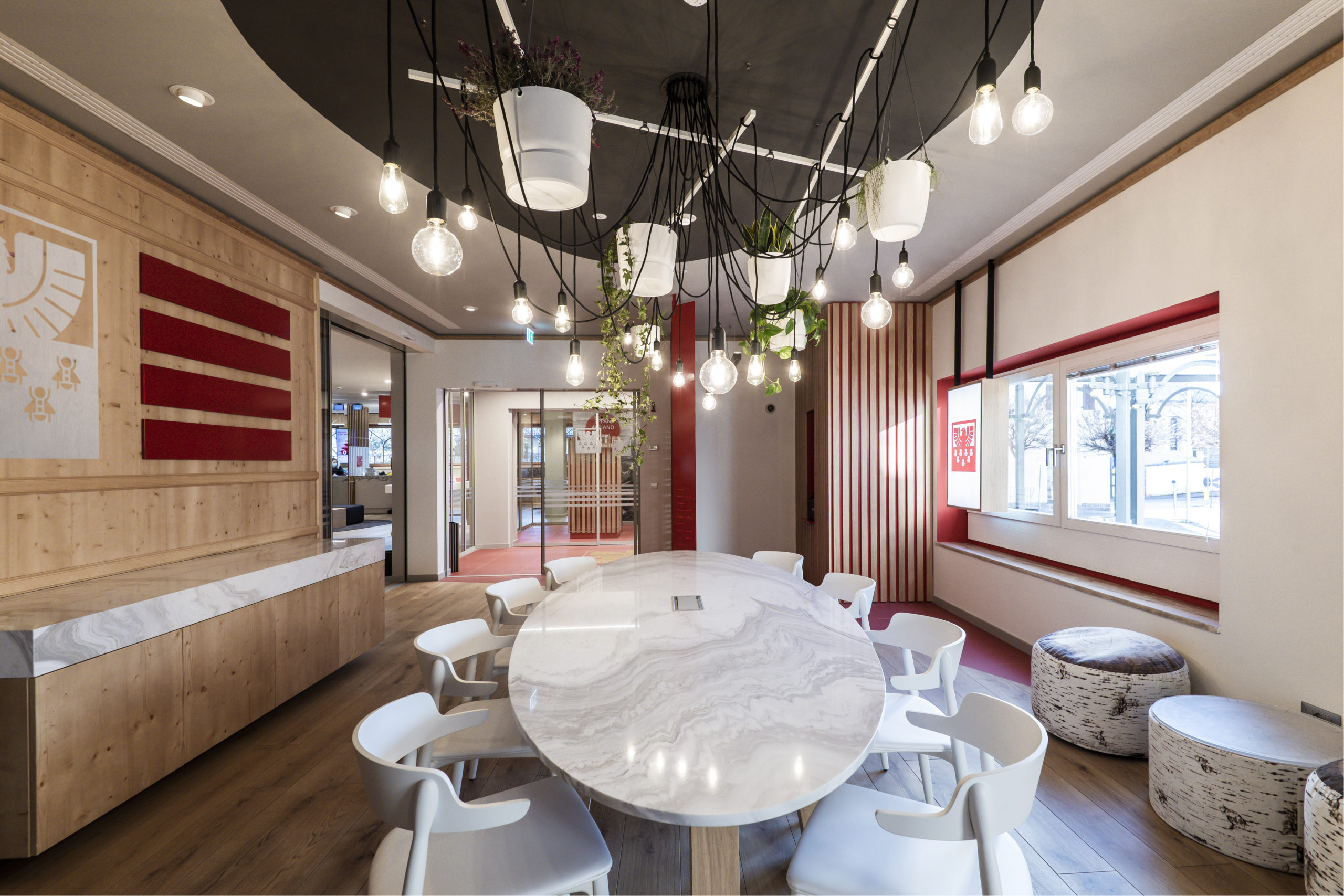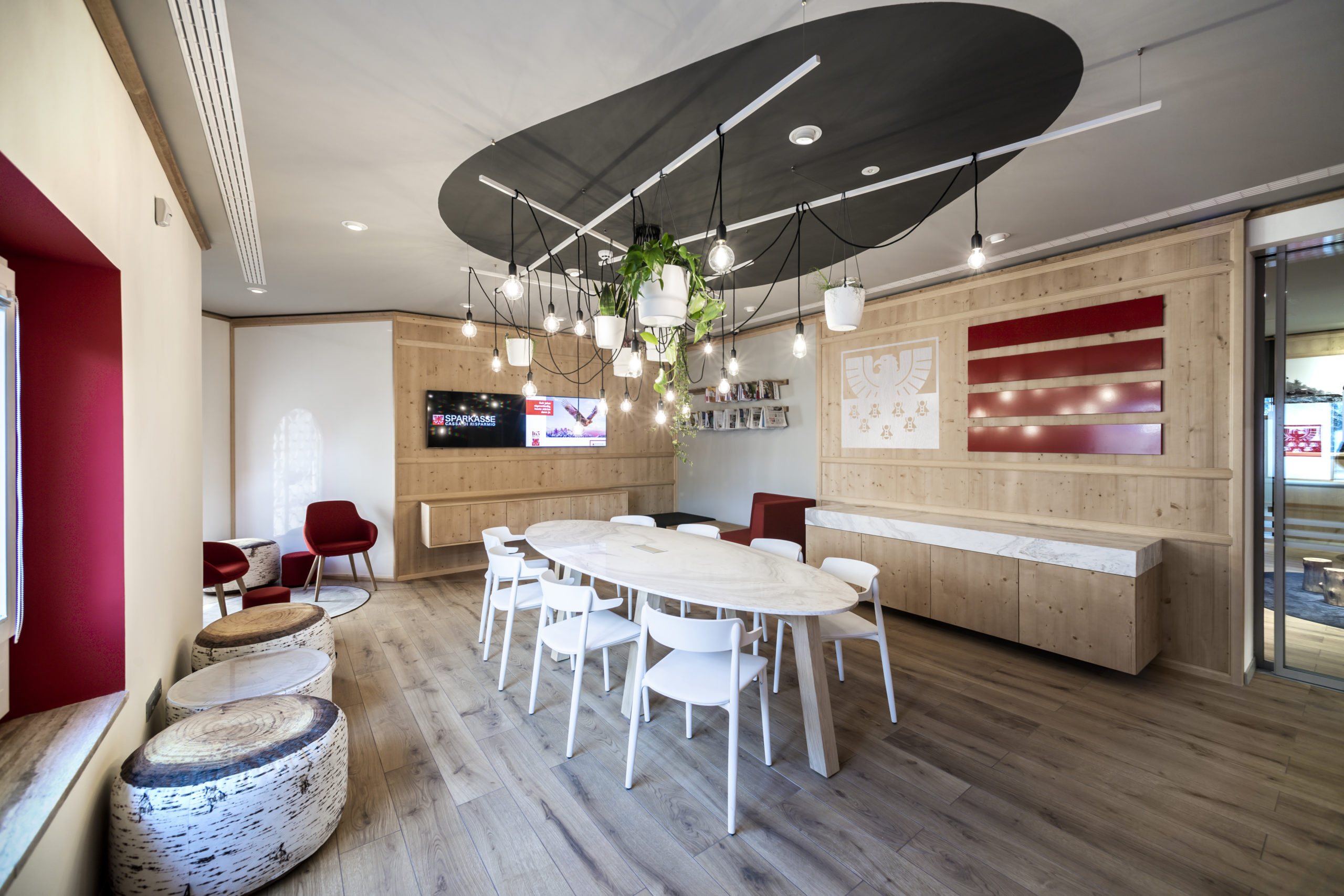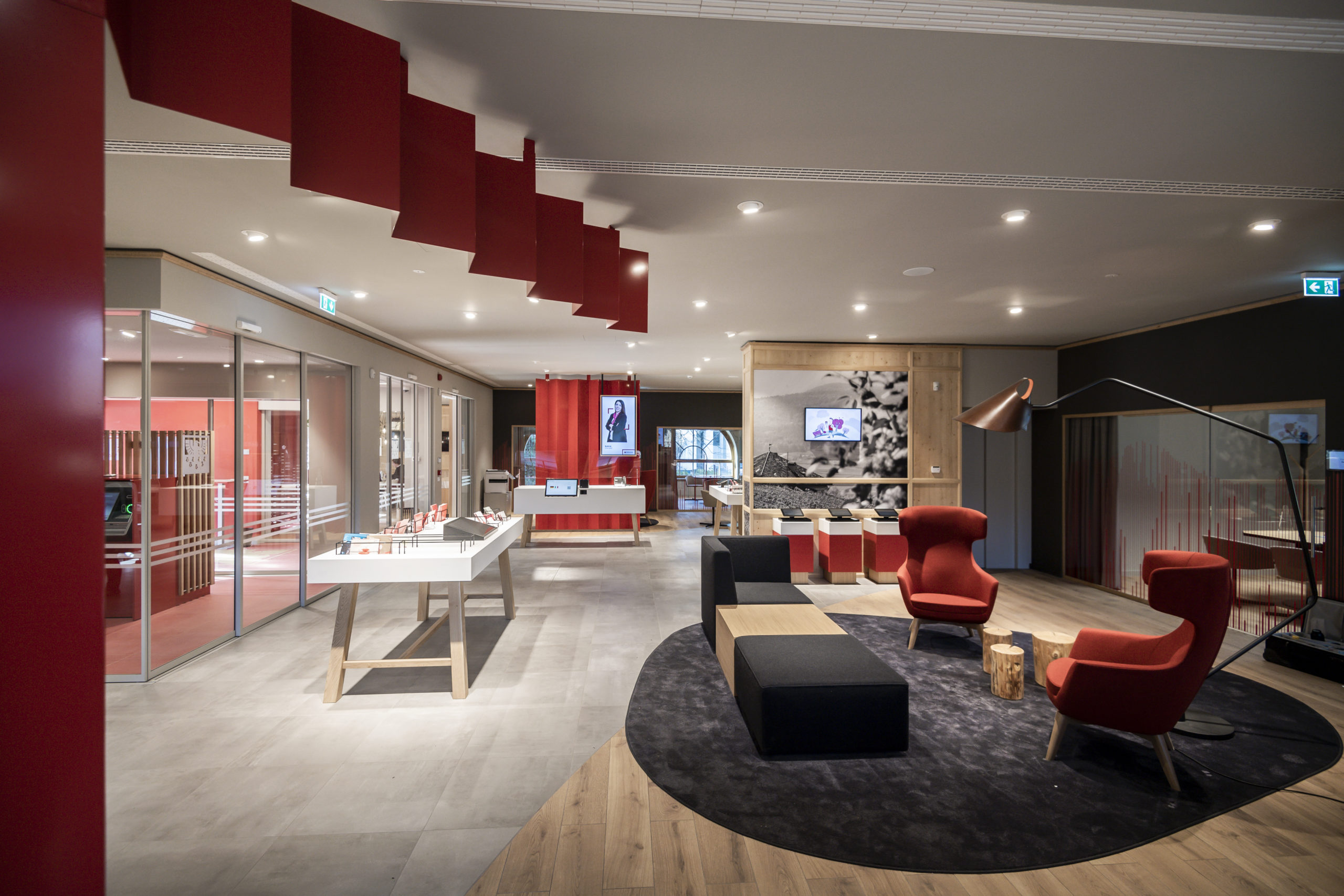 Das neue Filialkonzept hat die Sparkasse in Zusammenarbeit mit dem renommierten Südtiroler Unternehmen „Interstore I Schweitzer“, eines der international führenden Einrichtungsunternehmen für den Handel, entwickelt und umgesetzt. Das neue Layout beeindruckt durch digitale Lösungen und hochwertigen Materialien, die eine ideale Kombination aus Tradition und Innovation ergeben.