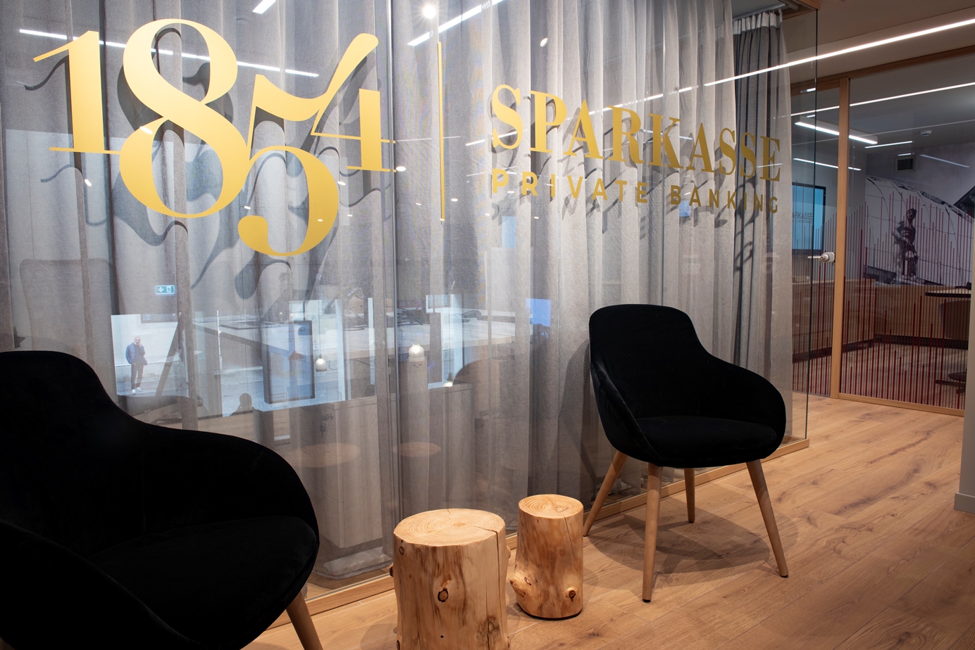 Die neue Sparkasse-Filiale folgt einem innovativen Ansatz hinsichtlich Empfang und Beratung. Das Konzept gründet auf Innovation und Digitalisierung und zeichnet sich durch ein neues Raumverständnisaus aus, das eine umfassende und persönliche Beratung gewährleistet. Gleichzeitig können Servicedienste zunehmend selbstständig in Anspruch genommen werden. Großer Wert wird auch auf eine effiziente Produktkommunikation gelegt. Während das Erdgeschoß dem Retail gewidmet ist, finden im ersten Stock die hochspezialisierten Strukturen Private Banking und Corporate Banking ihren Platz.