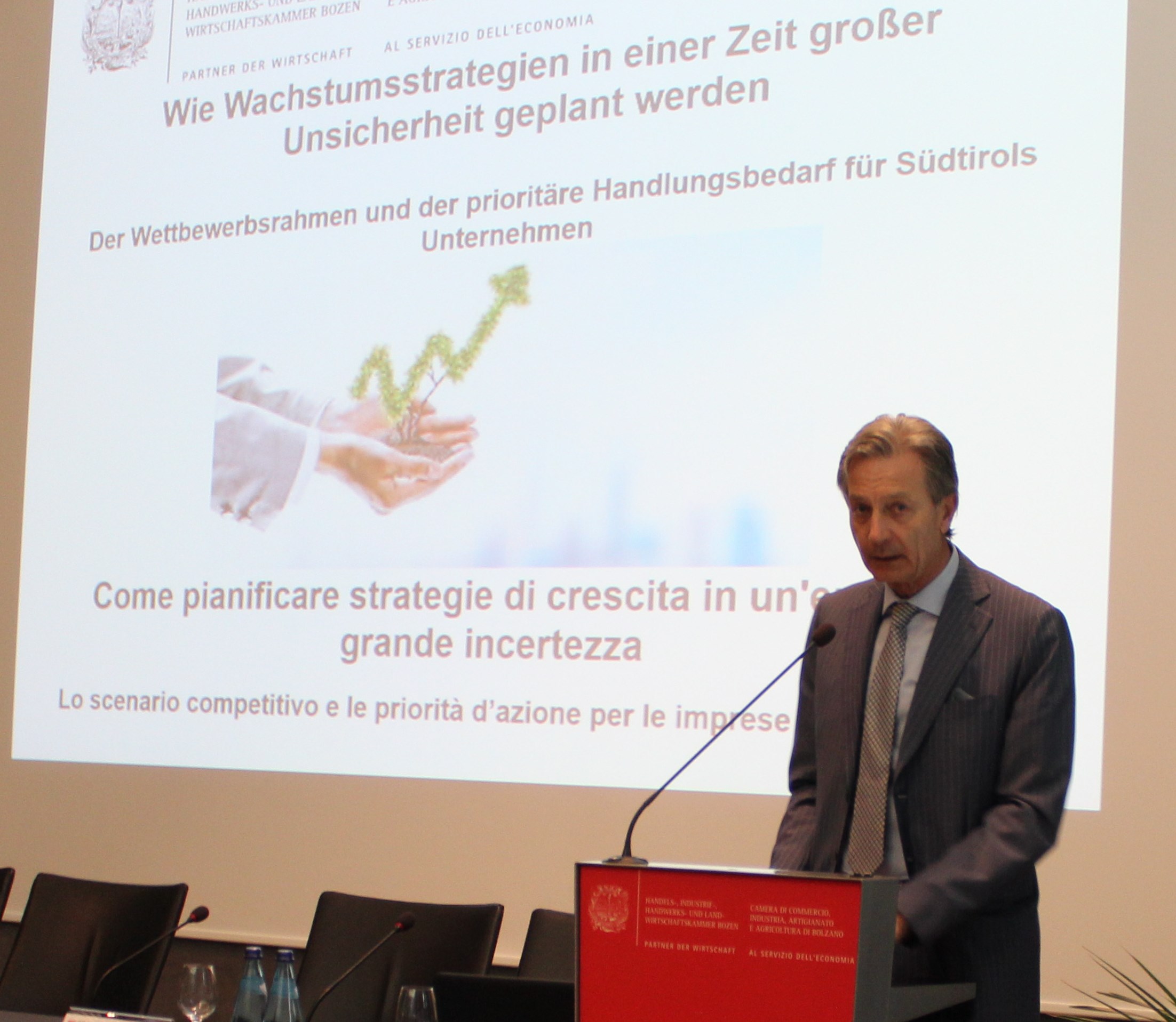 Ziel der Tagung in der Handelskammer Bozen war es, den rund 60 teilnehmenden Unternehmen Anregungen und Instrumente mit auf den Weg zu geben, die ihnen dabei helfen, langfristig wichtige Wettbewerbsvorteile aufzubauen, Handlungsbedarf bei konjunkturellen Veränderungen frühzeitig zu erkennen und ihre Unternehmensstrategie erfolgreich danach auszurichten.